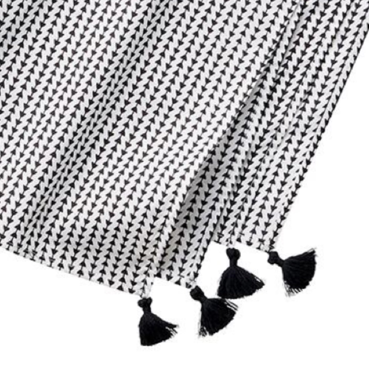四隅にプリントと同系色のフリンジがついています。