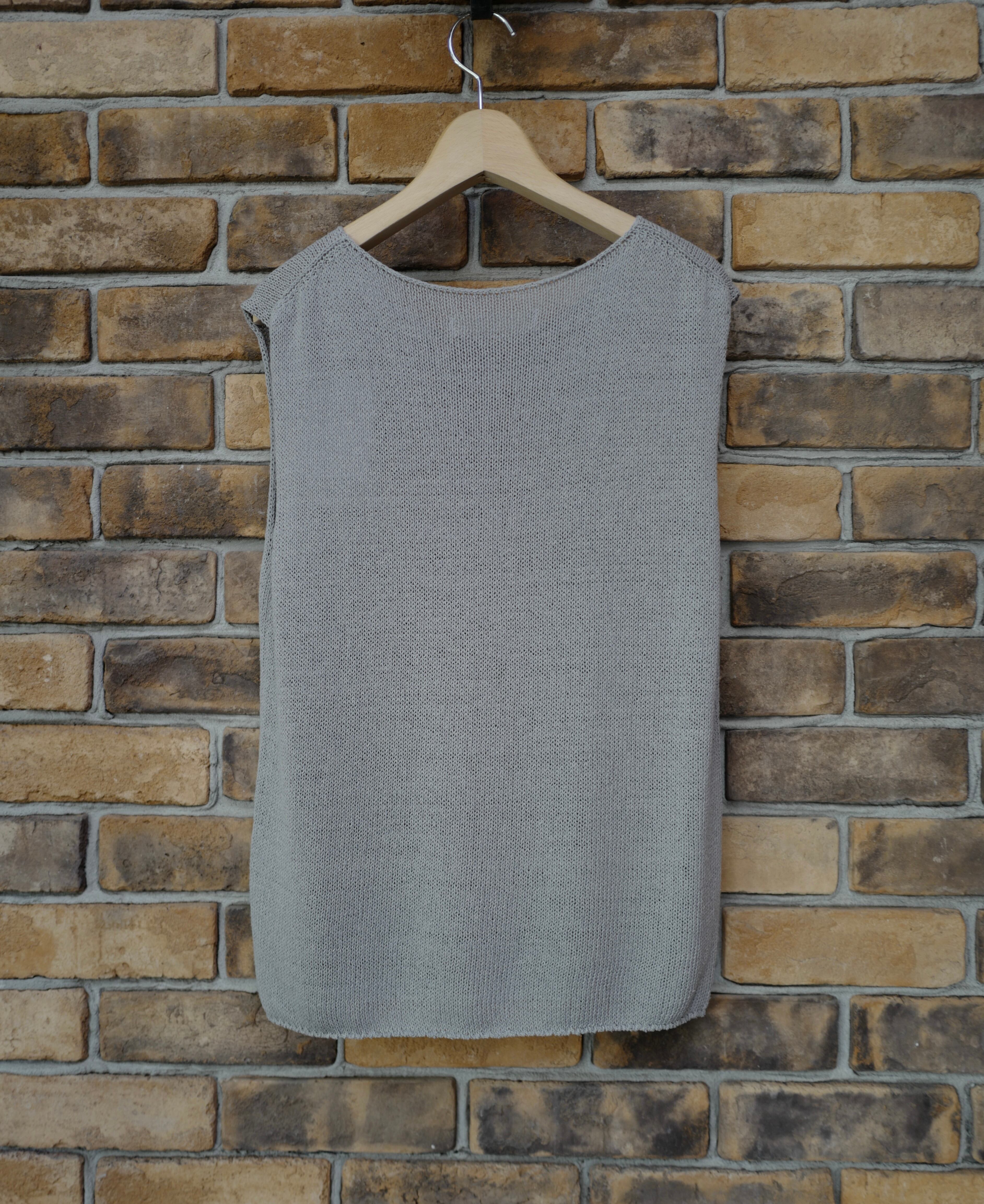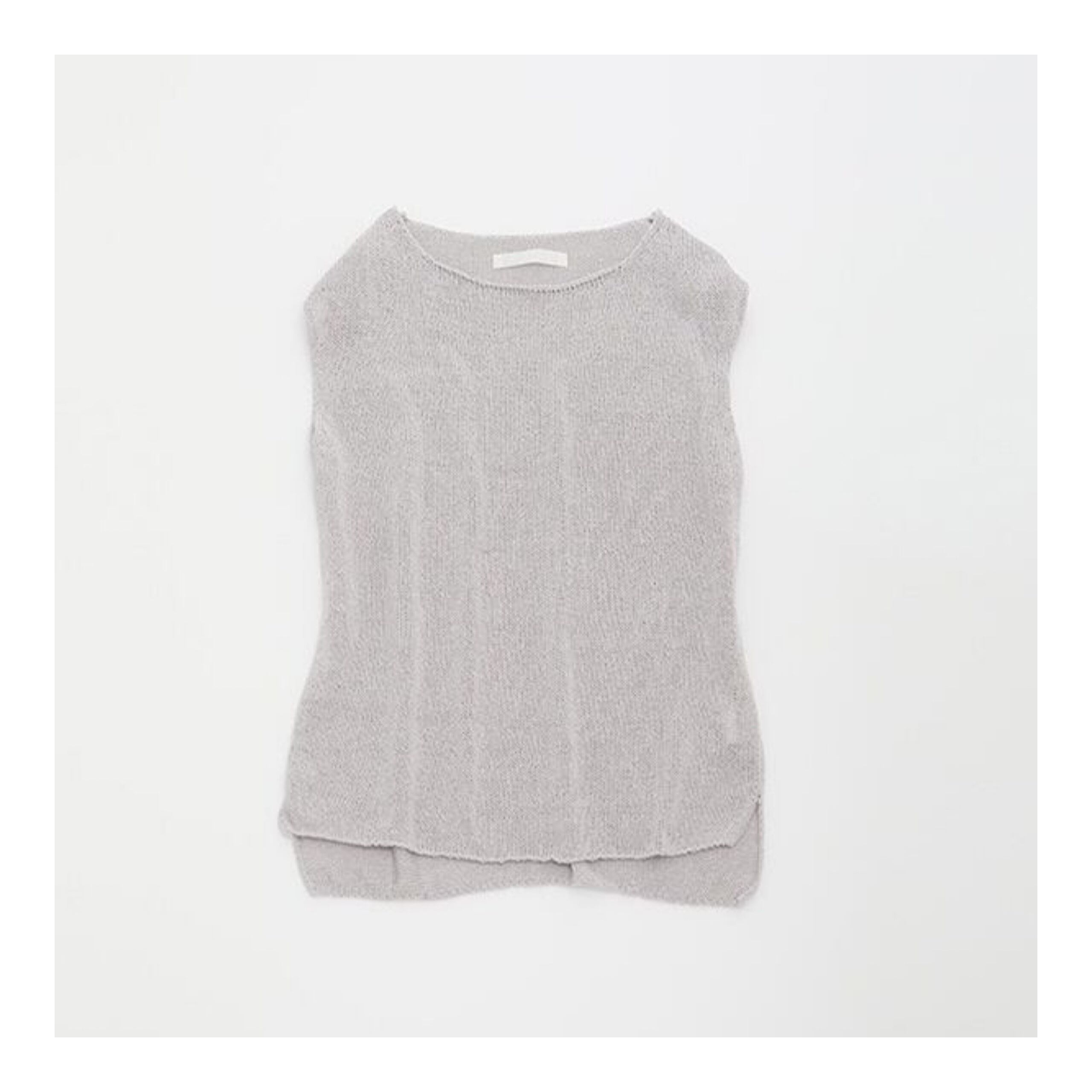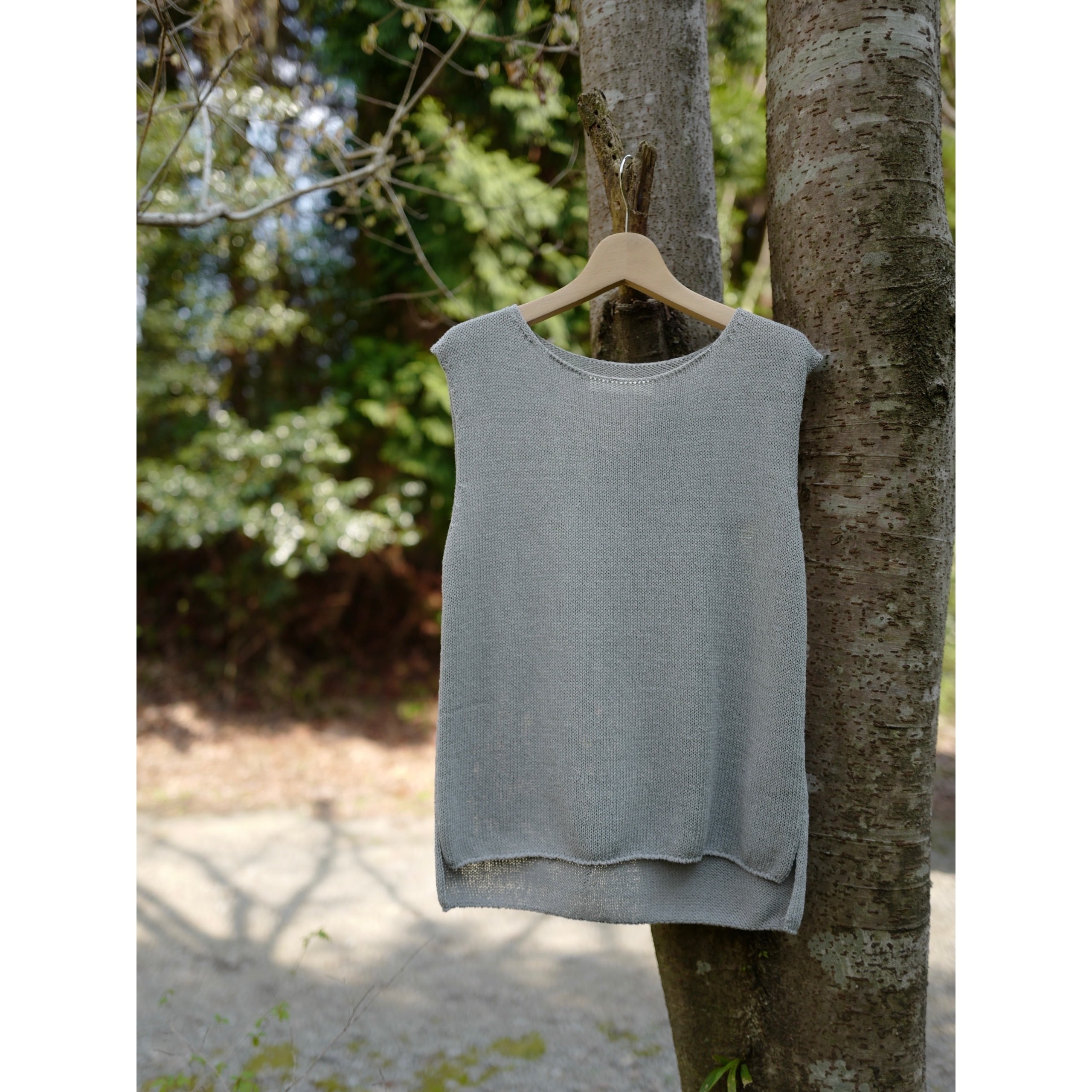 春はベストに。夏はノースリーブニットとして活躍する一枚。