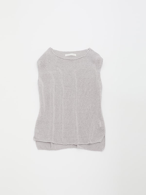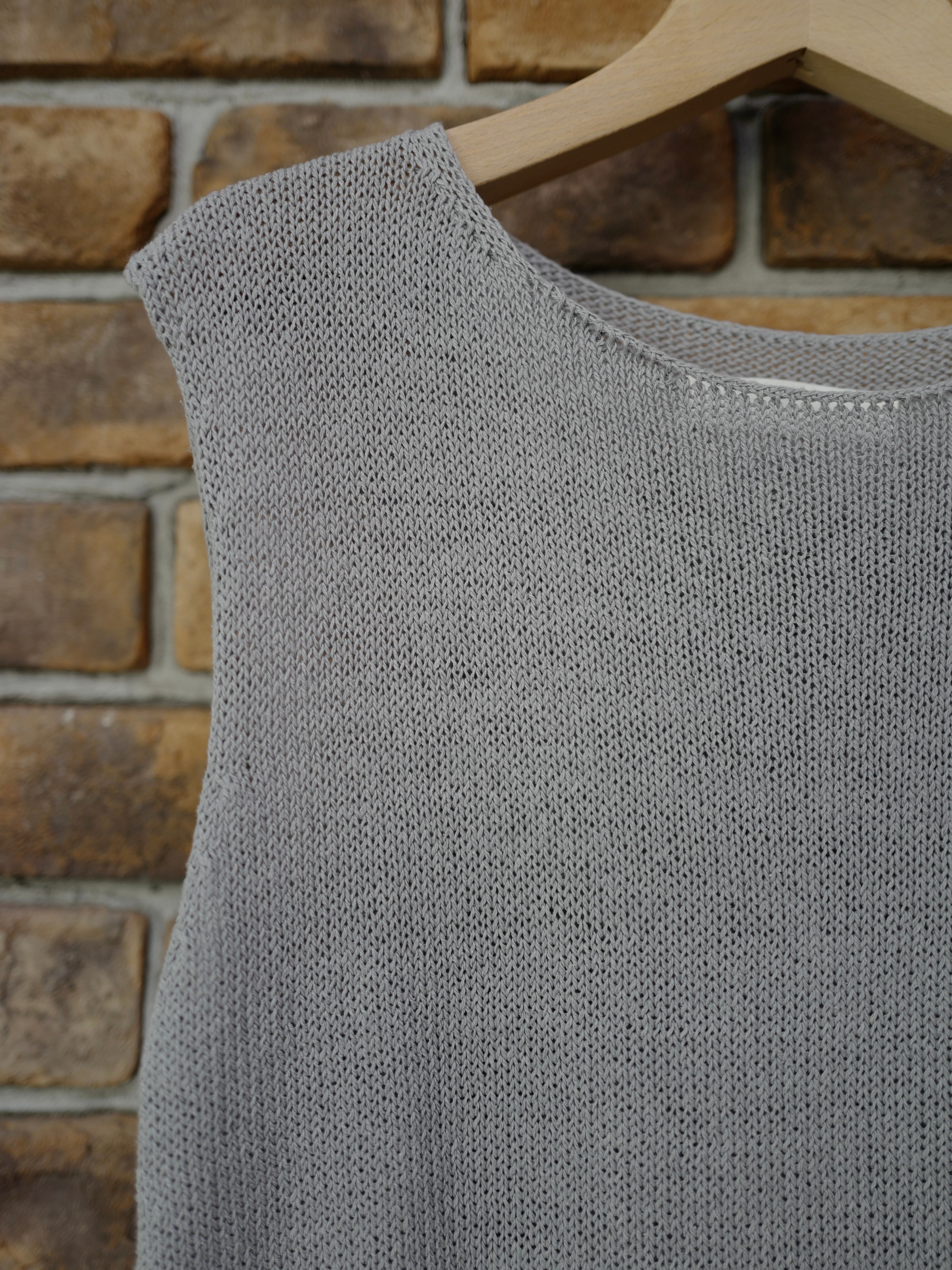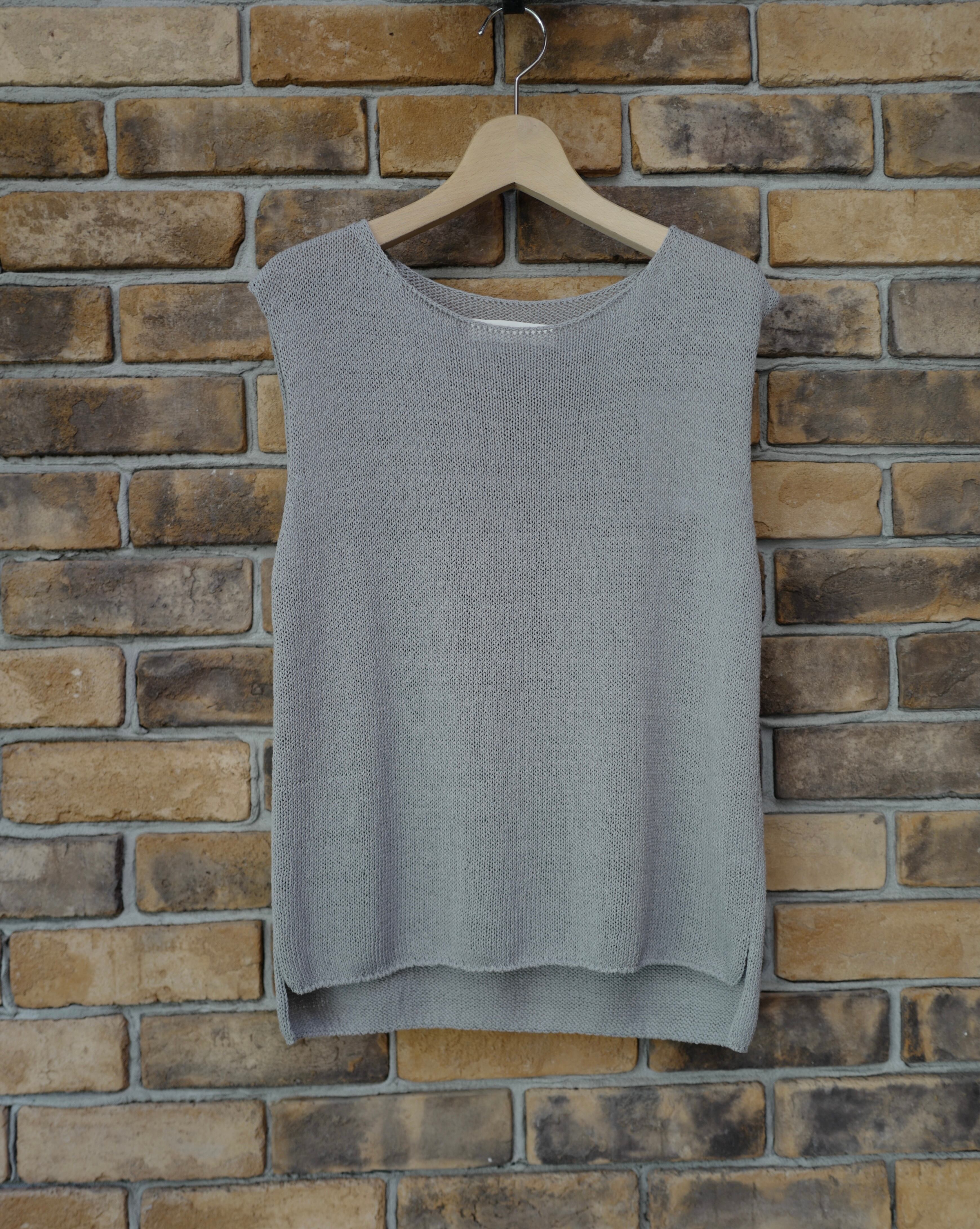 春はベストに。夏はノースリーブニットとして活躍する一枚。
