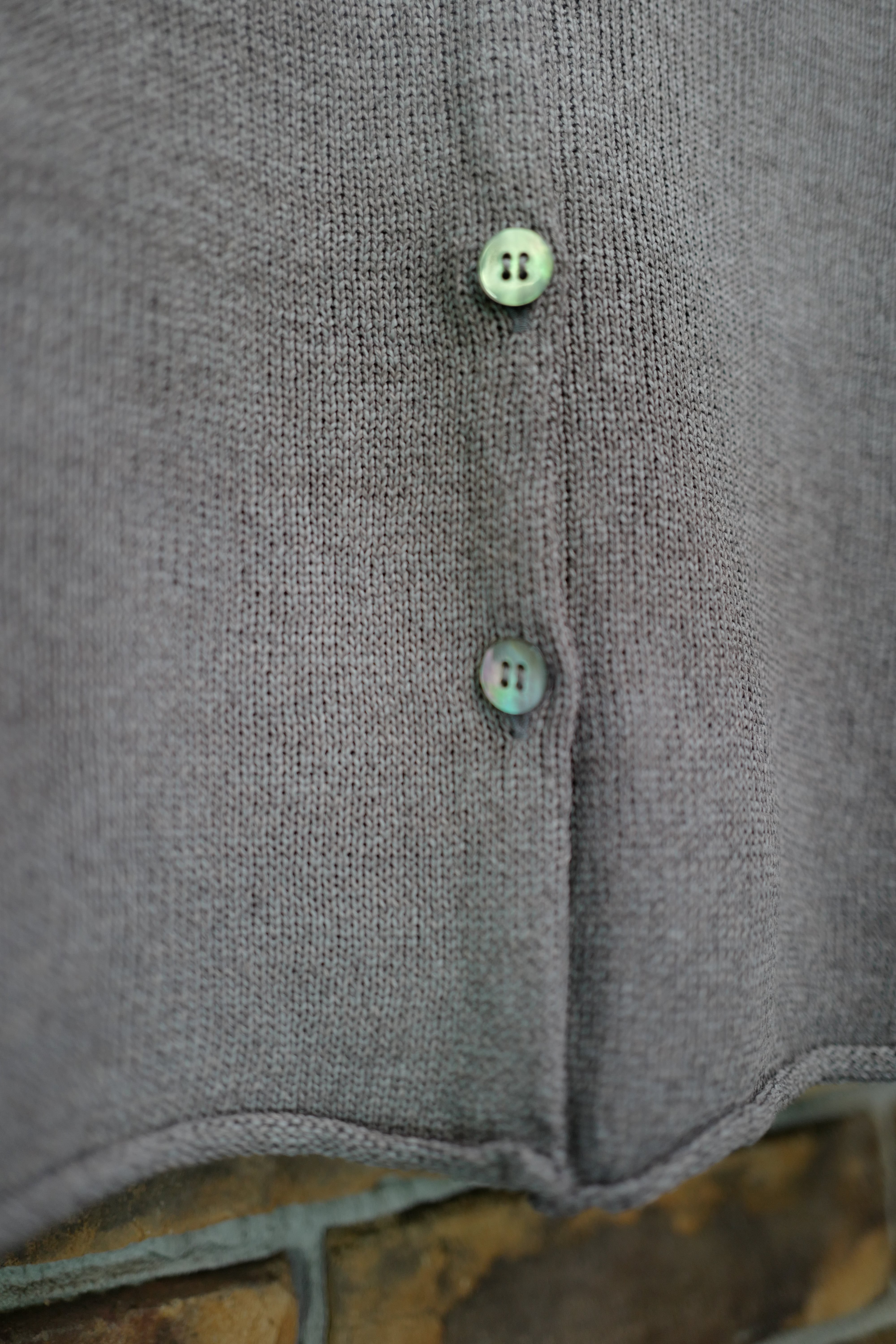 大きめのボタンと、ごく浅いVネックもポイント。