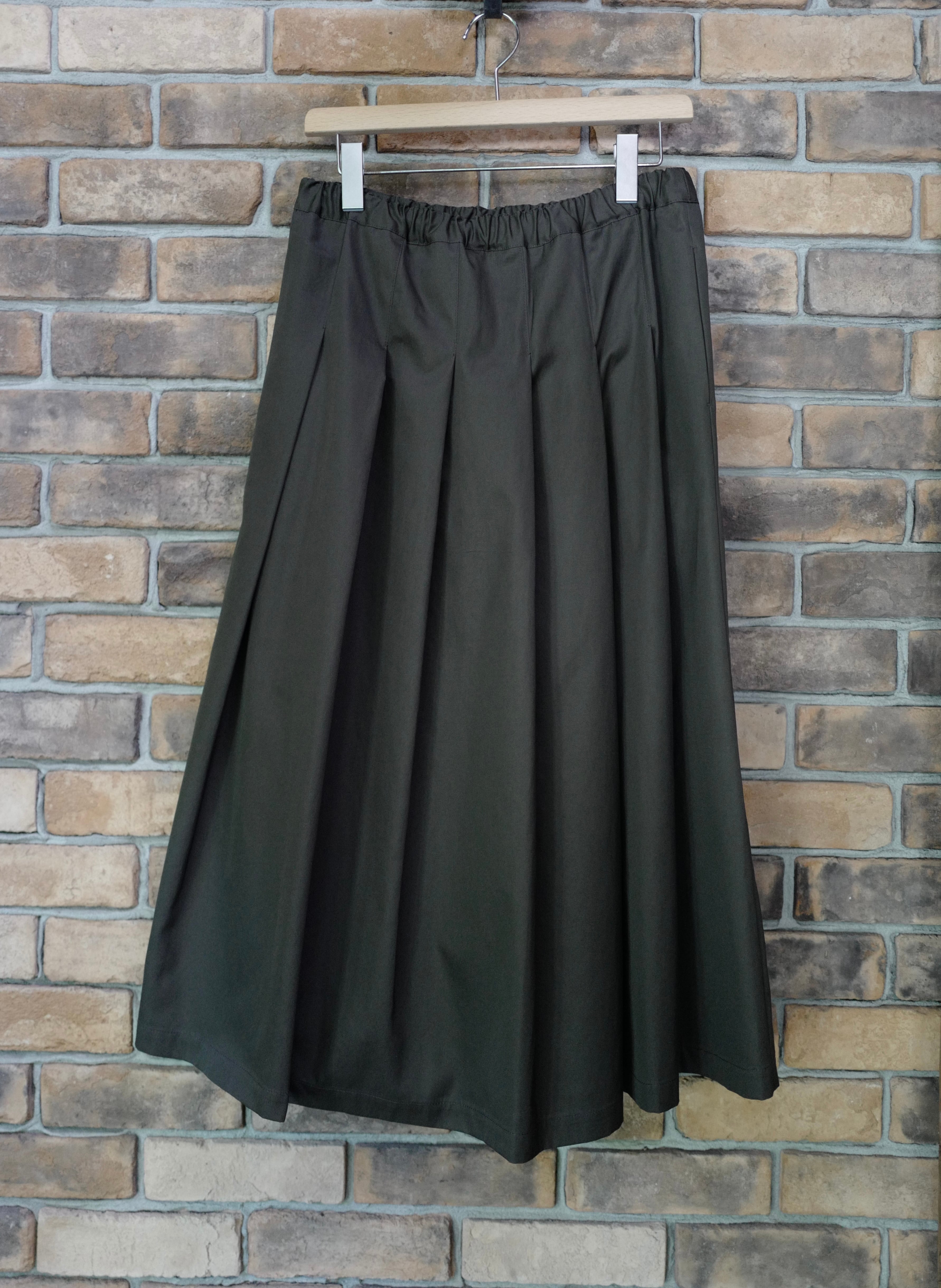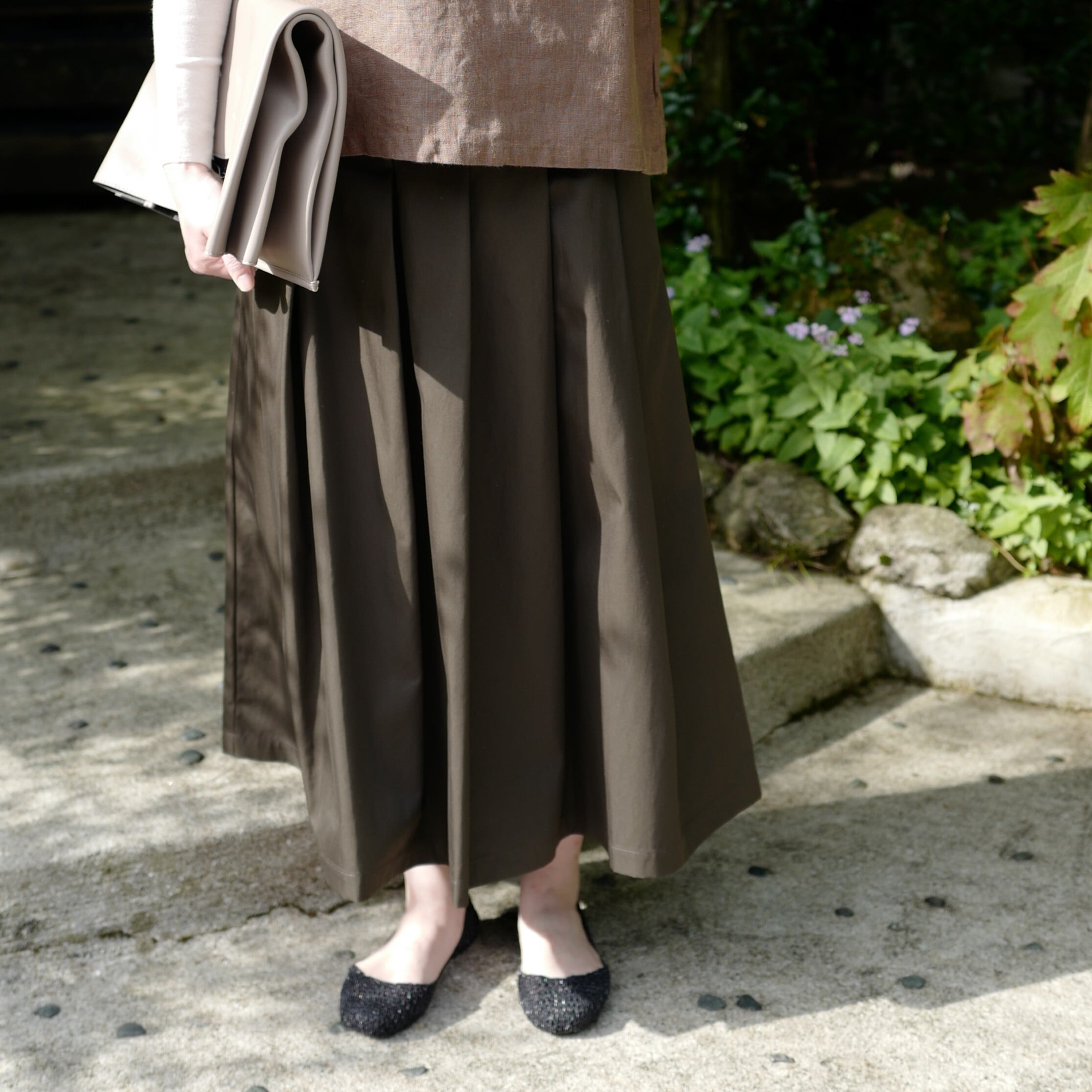 長めの丈にたっぷりとにプリーツを入れた、クラシックなスカートです。