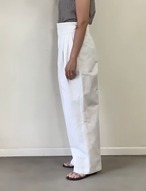 上質なフランダースリネンと綿のコンパクト糸を合わせ、綾目に独特の光沢がある風合いの綿麻生地を使用したパンツ。