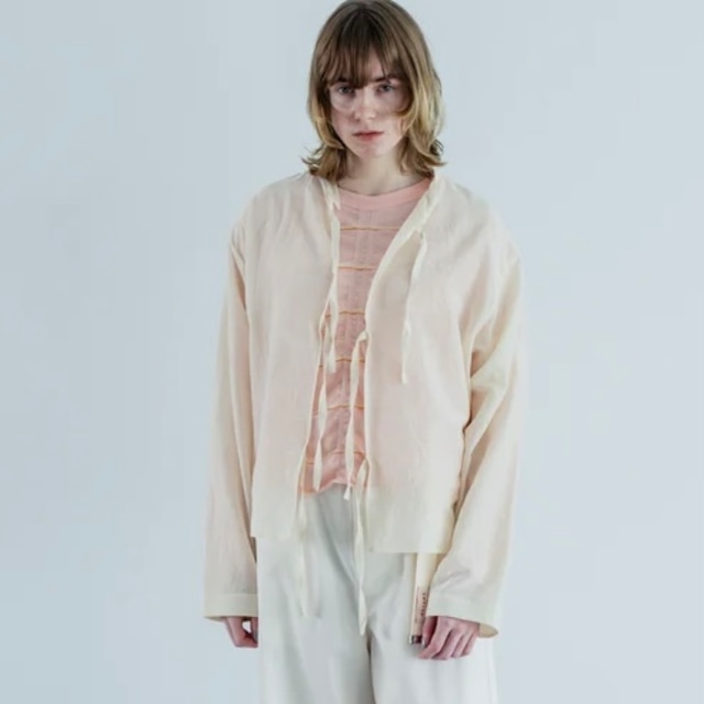 素材の持つ柔らかさを活かすために、裾と袖口を自然な流れでクルッとロールアップさせています。