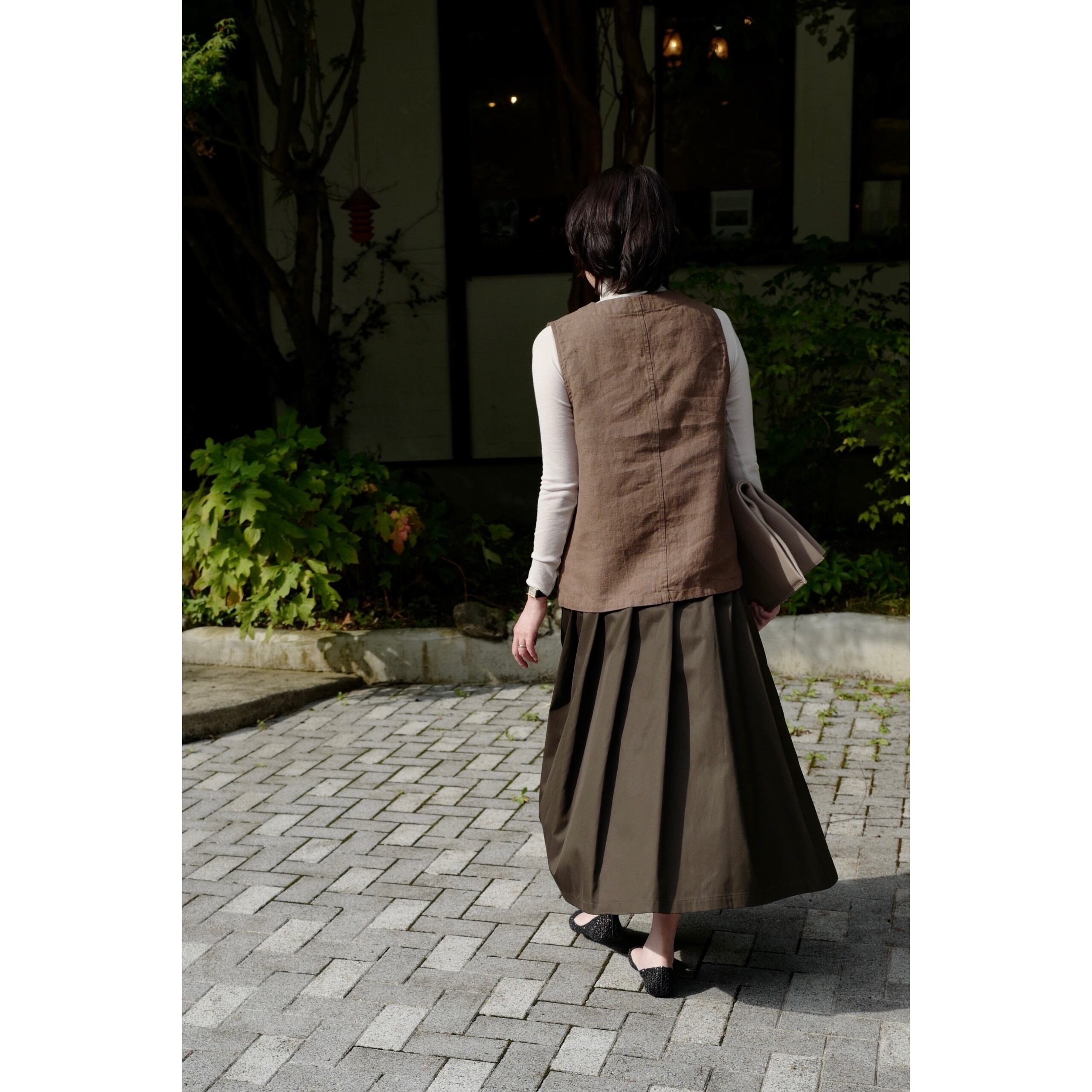 どの色もevam evaの定番色で、evam evaの他のアイテムはもちろんですが、とても合わせやすい上に、コーディネートに上品な表情を添えてくれる存在となってくれます。