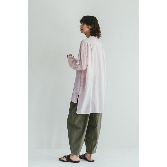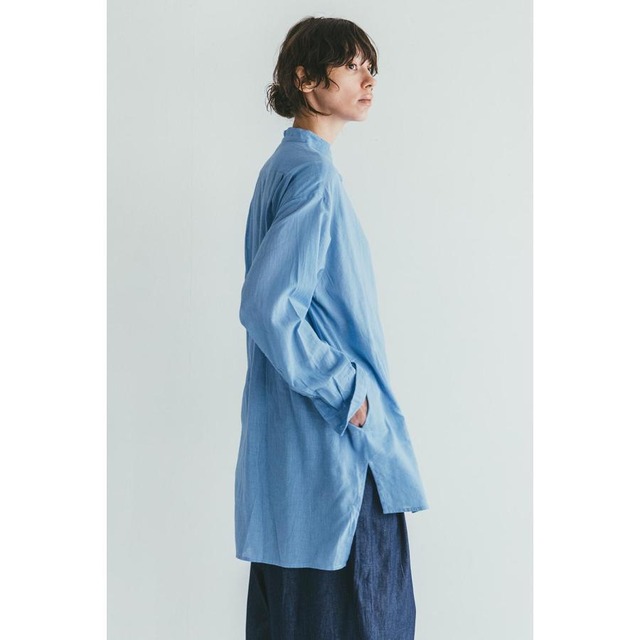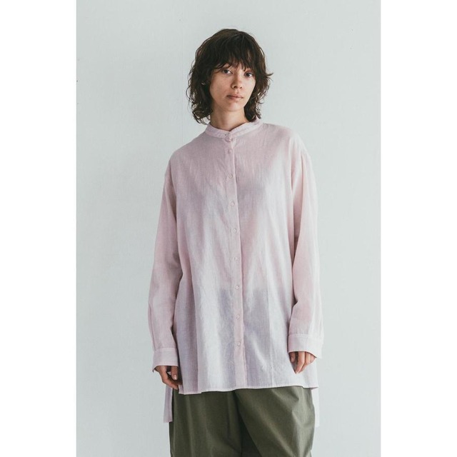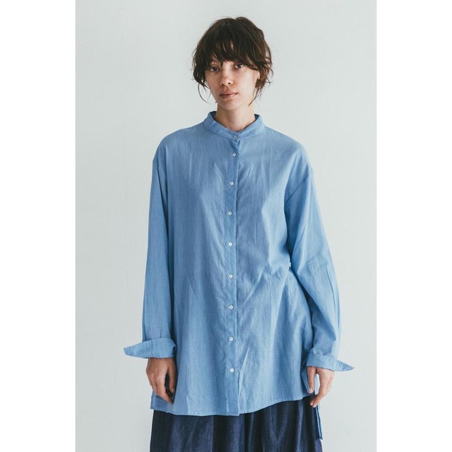薄手のコットン生地で仕立てたバンドカラーのブラウス。