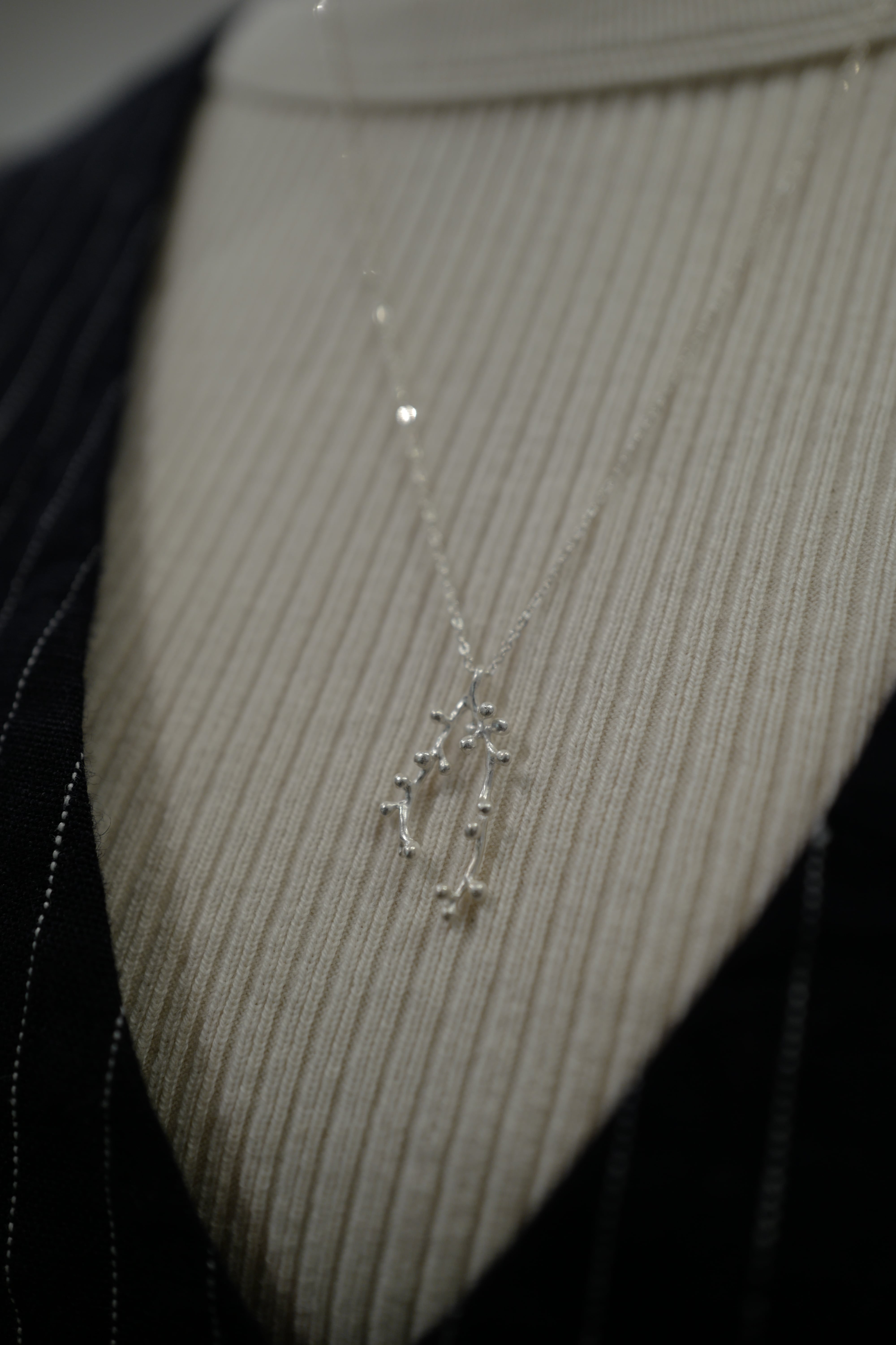 アクセサリー作家・中村なづきさんの「グリーンネックレス」のシルバー製ネックレス。