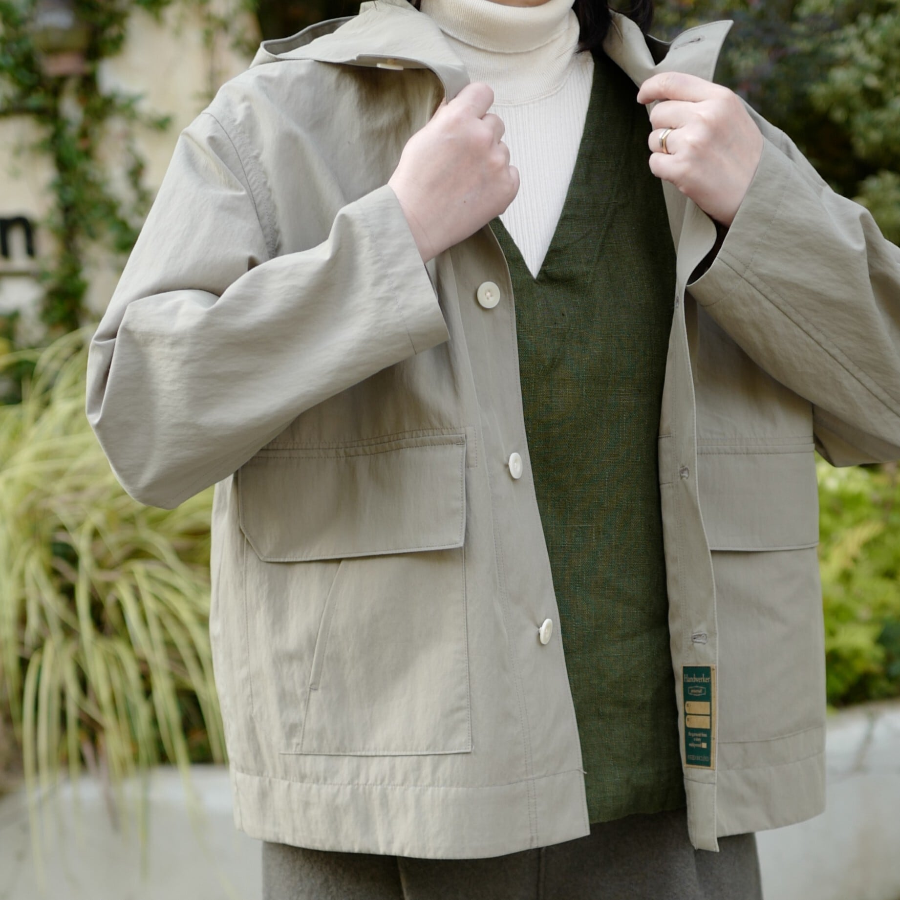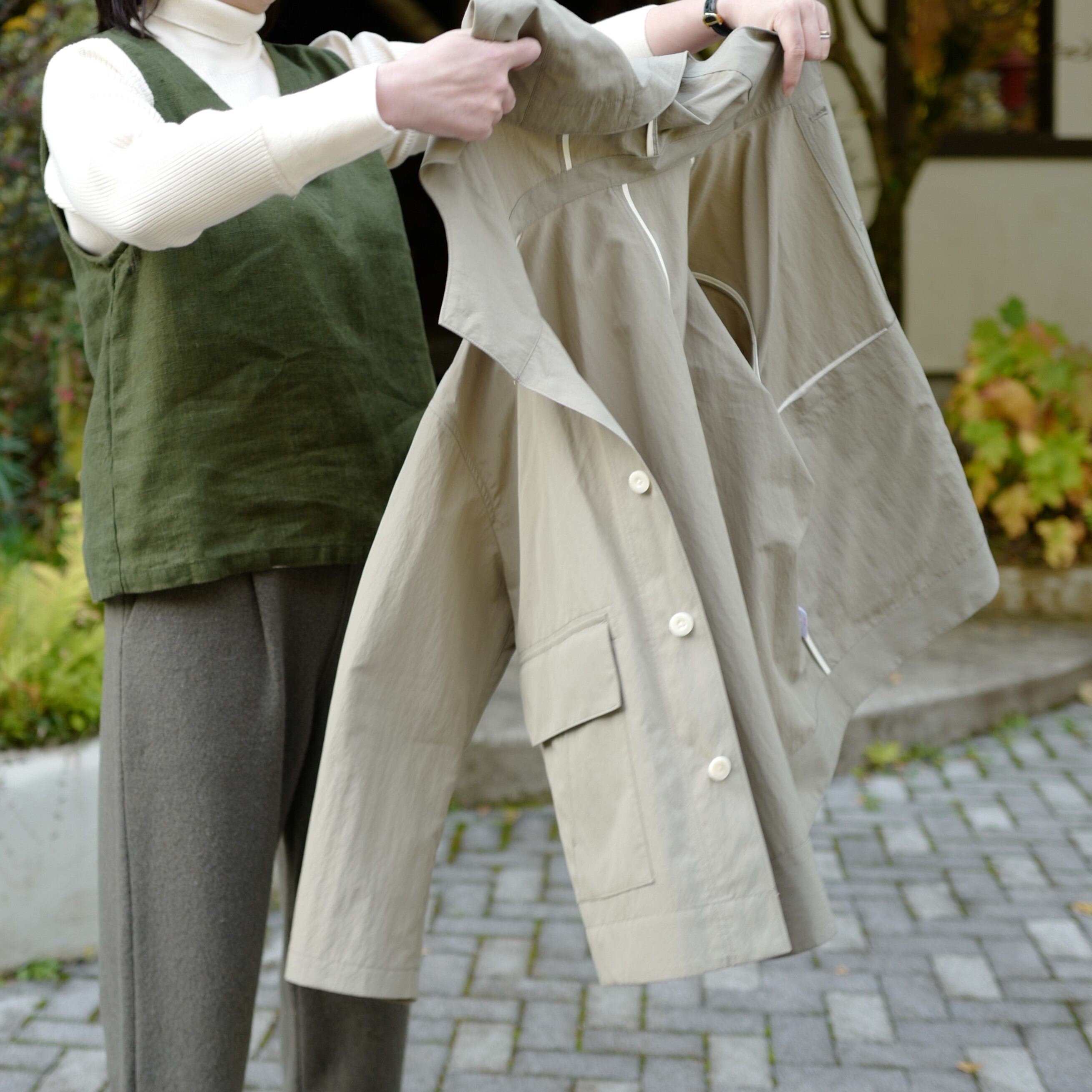 秋口には一枚で、冬にはニットのインナーとして。
