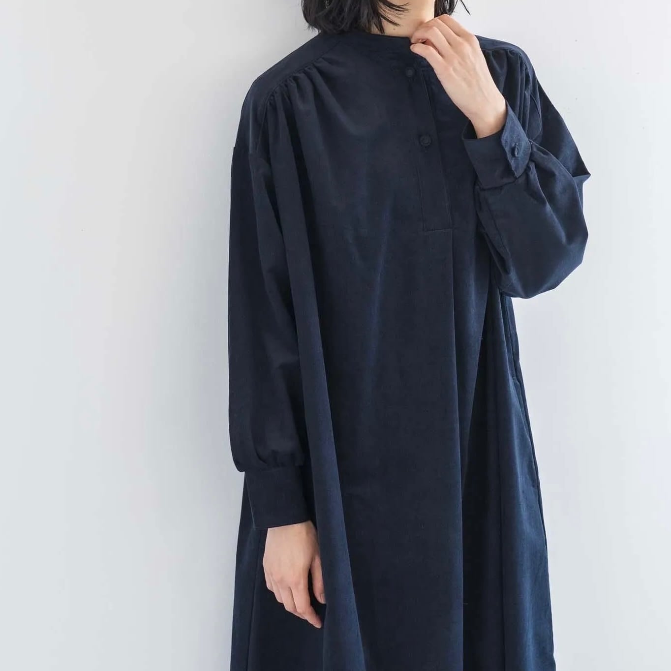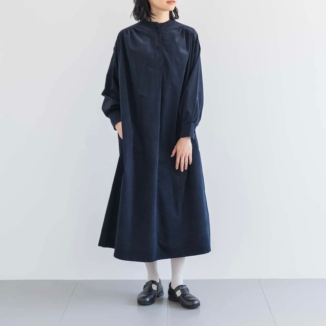 D|エアコールギャザーワンピース(ネイビー)コーデュロイ