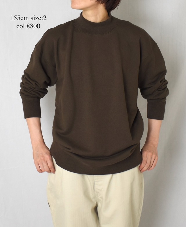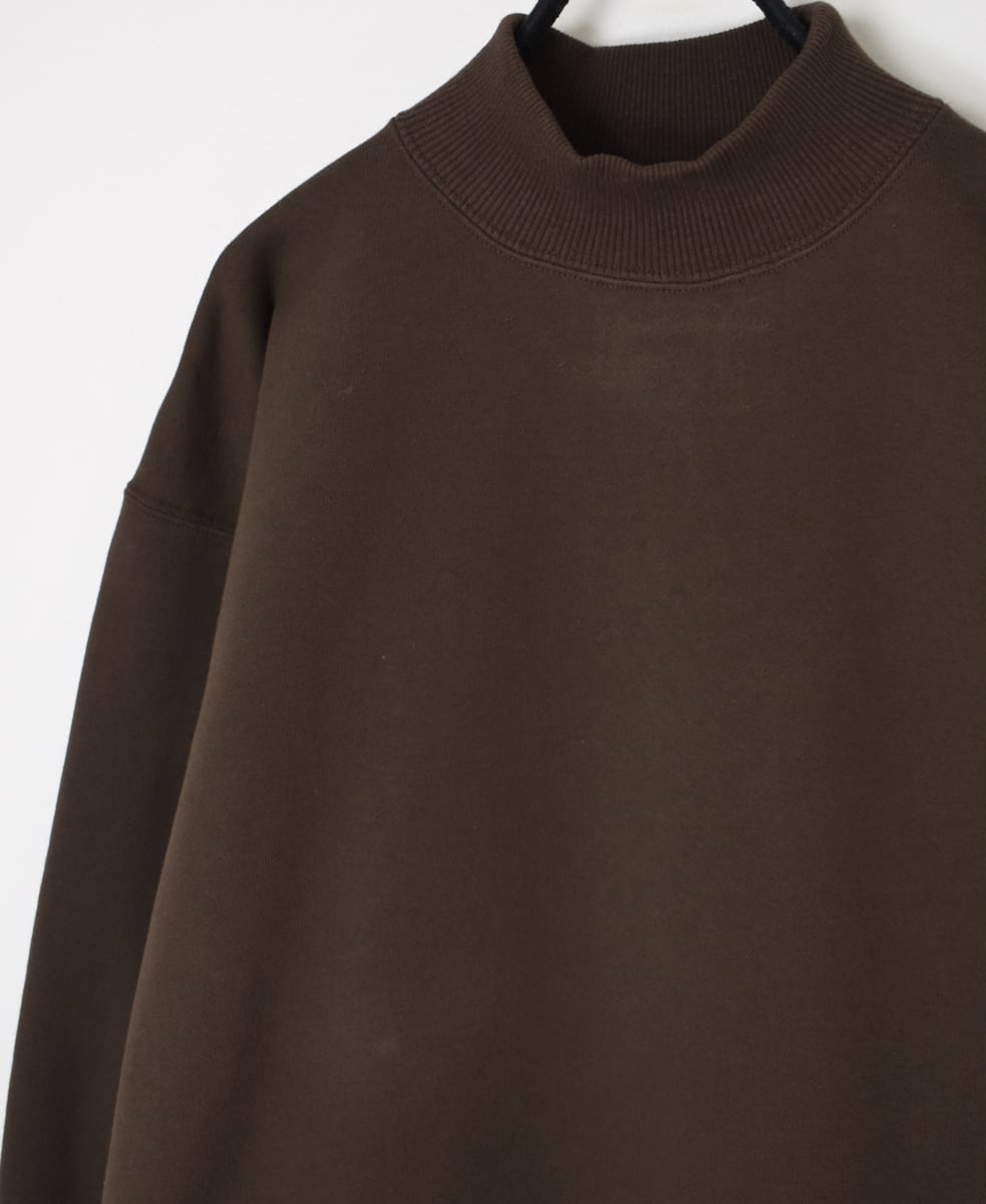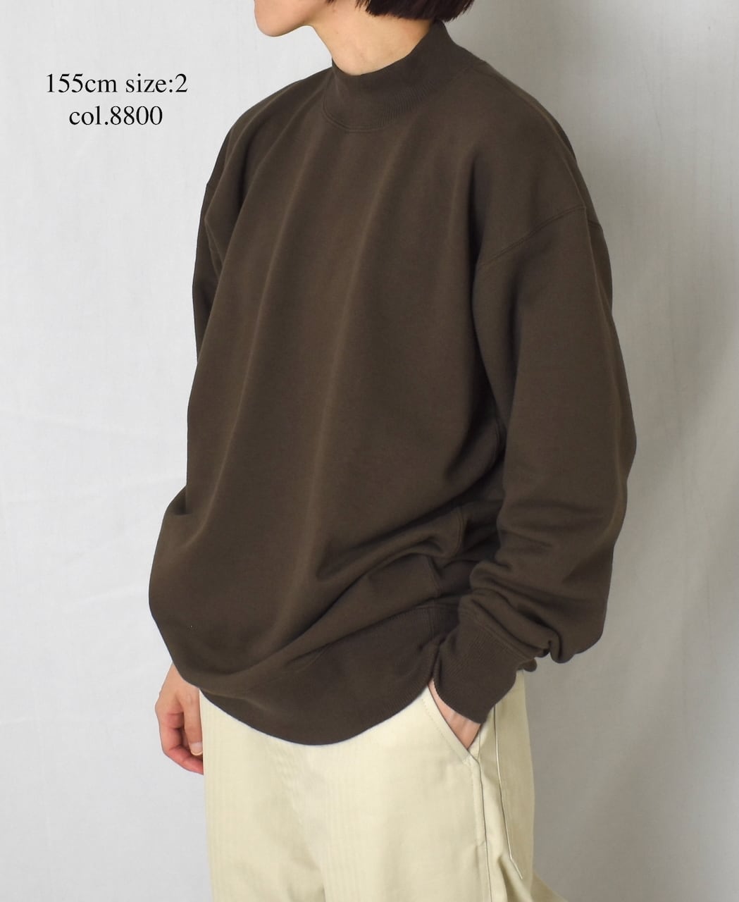 襟元が少し高めのモックネックで一枚でも様になるデザイン。