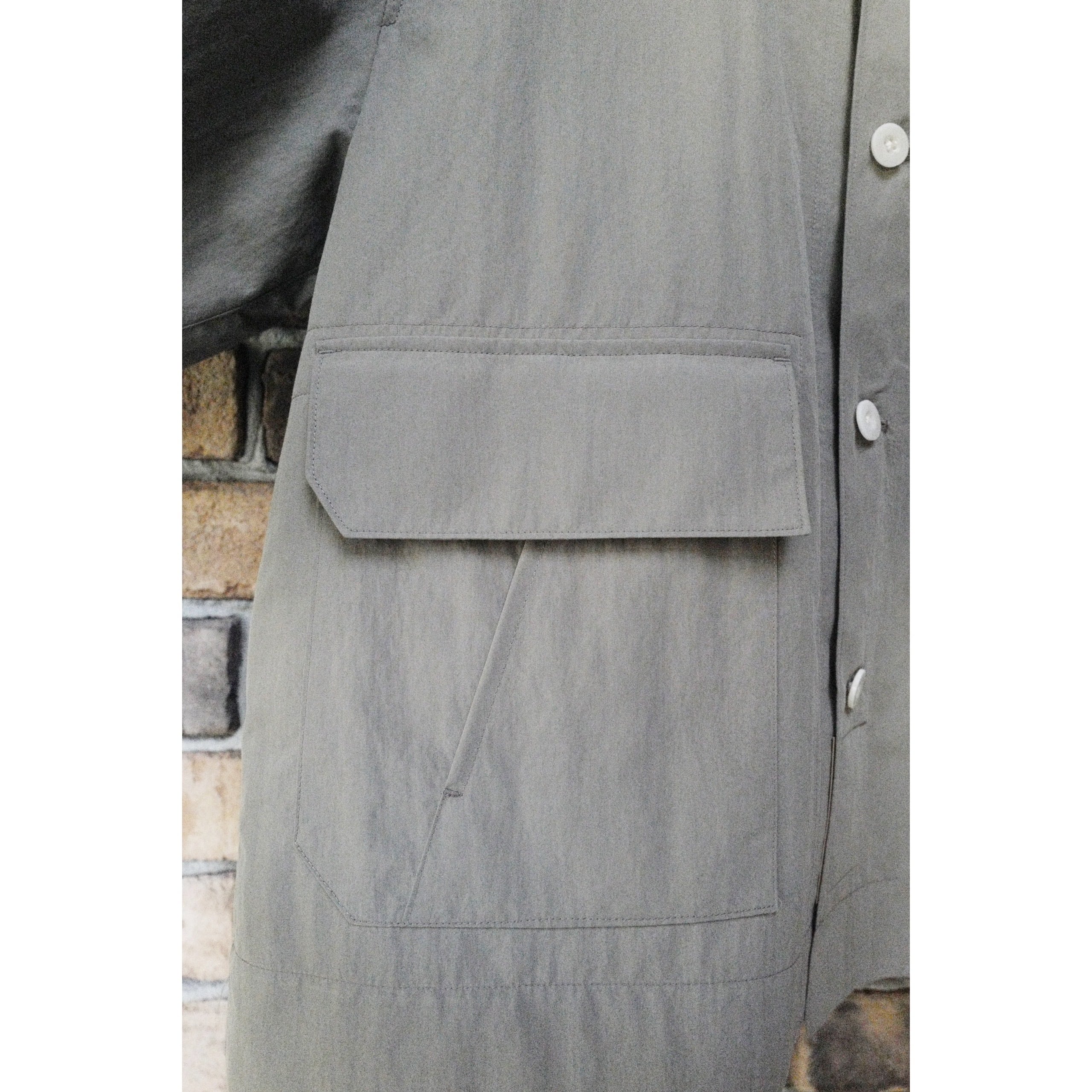 フラップ付きの大きなパッチポケットは、右にはスラッシュポケットもあり二重になっています。