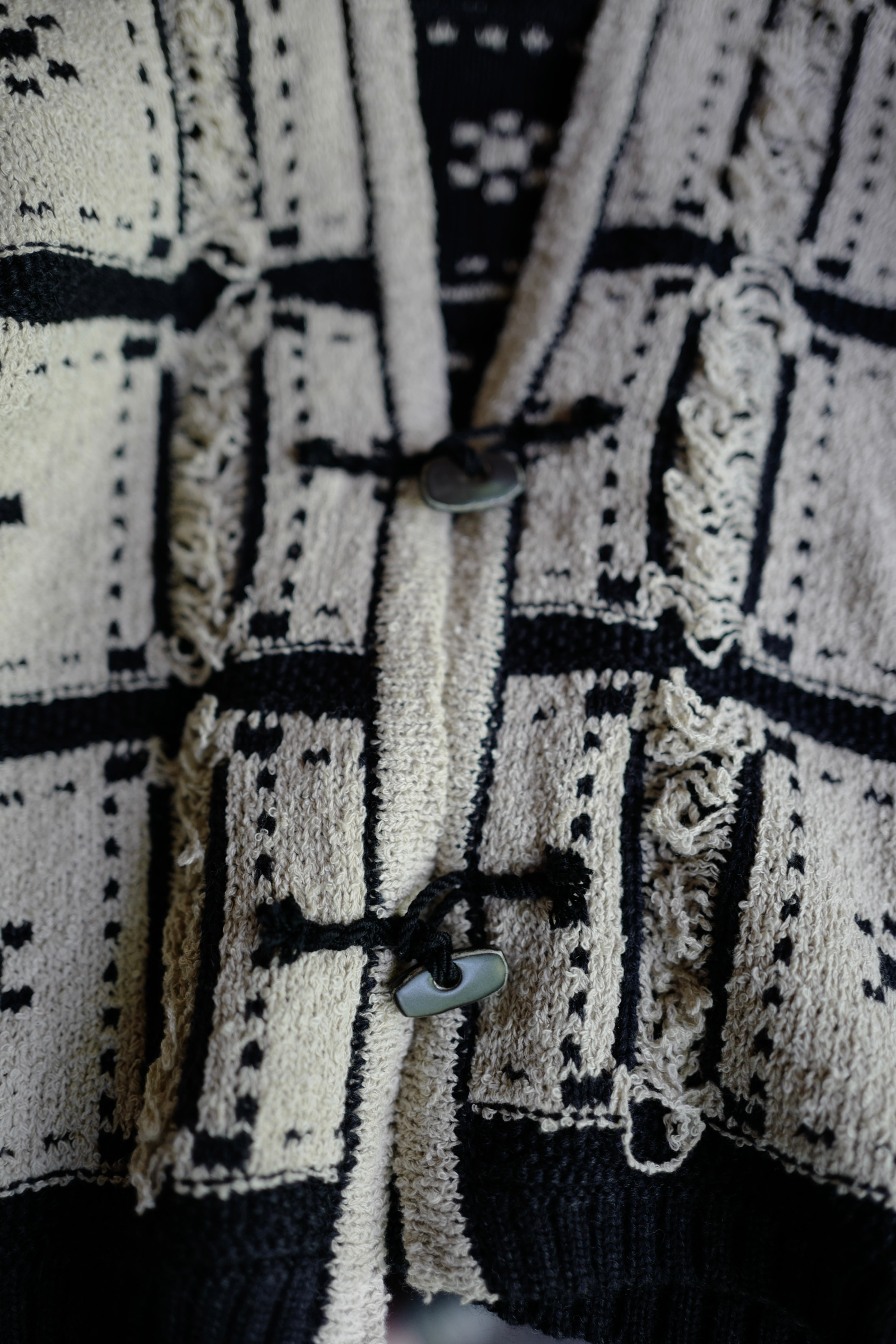産毛のように柔らかなネップ状の高級綿糸と、柔軟性と弾力を併せ持つメリノ由来のウール糸を使用し、テクスチャを感じるブロック柄が表現されたニットジャケットです。
