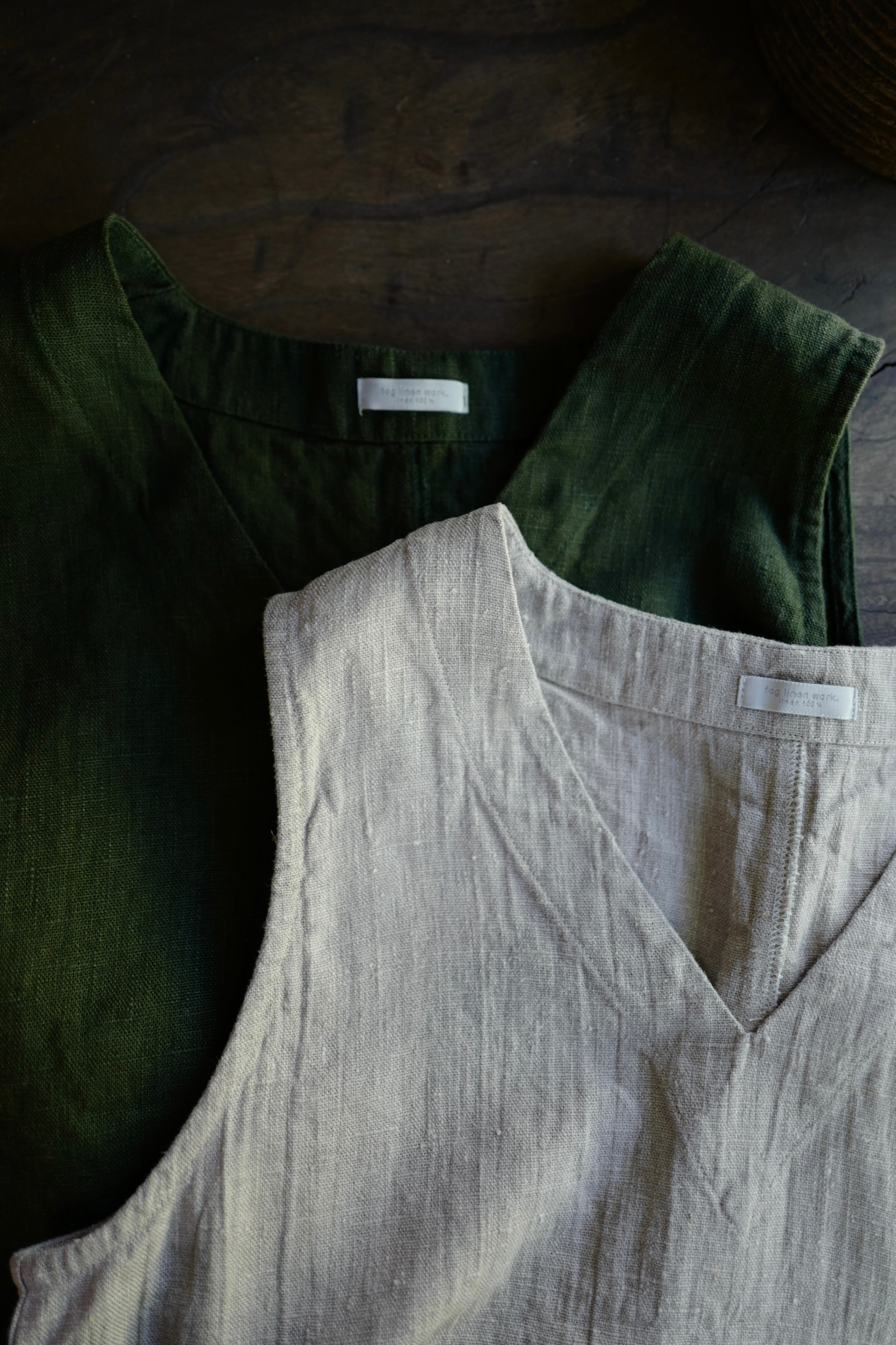 《別注》fog linen work|厚地リネンVネックベスト・ジレ(col.ナチュラル/生成り)