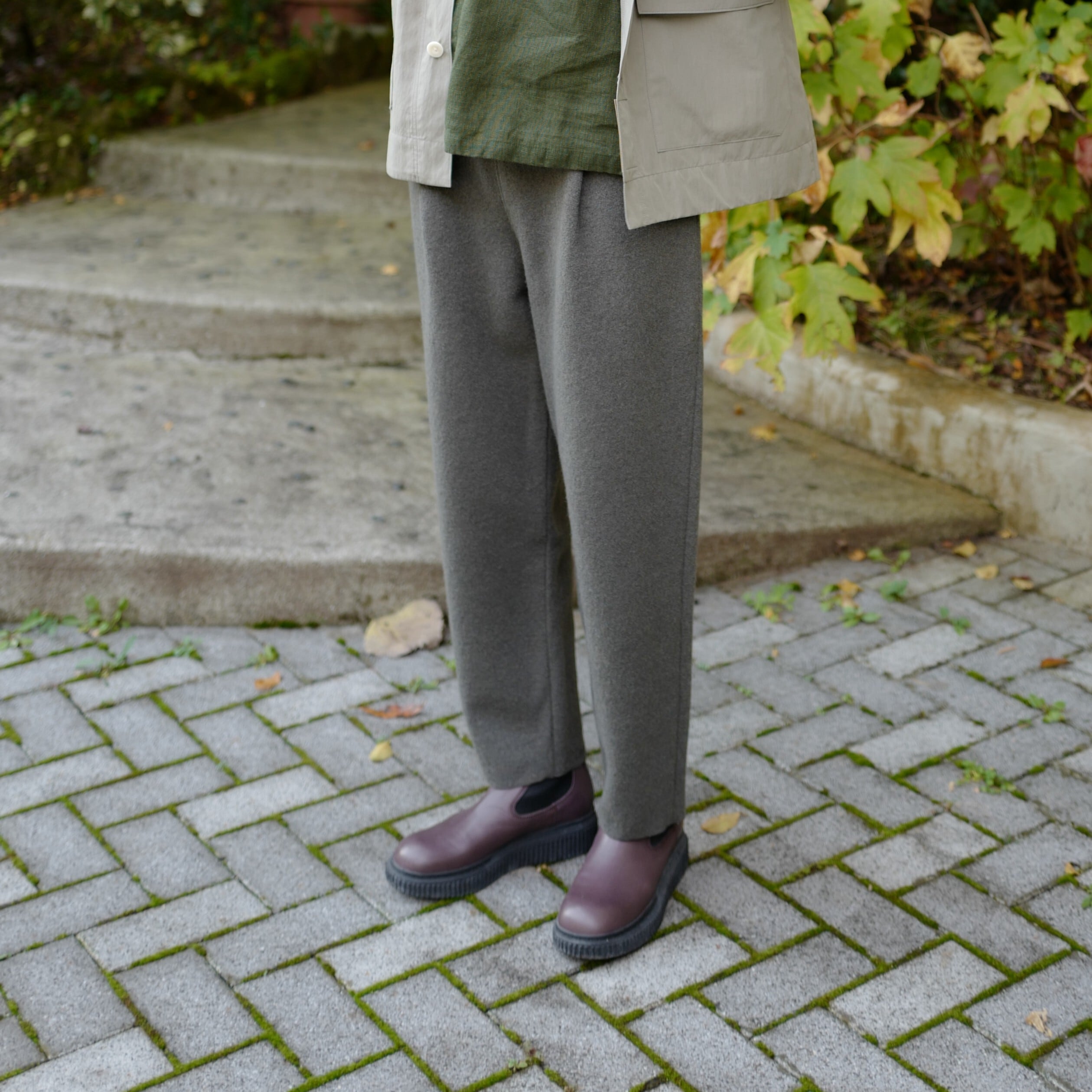evam eva |press wool pants(圧縮ウール)moss gray, charcoal