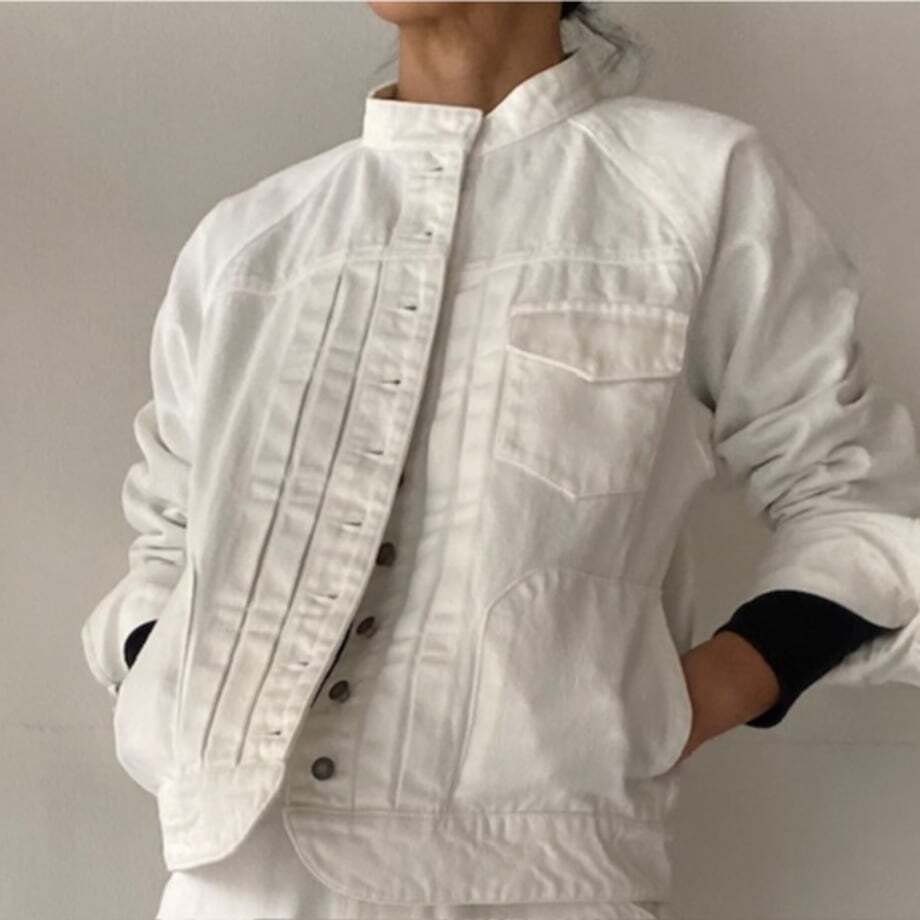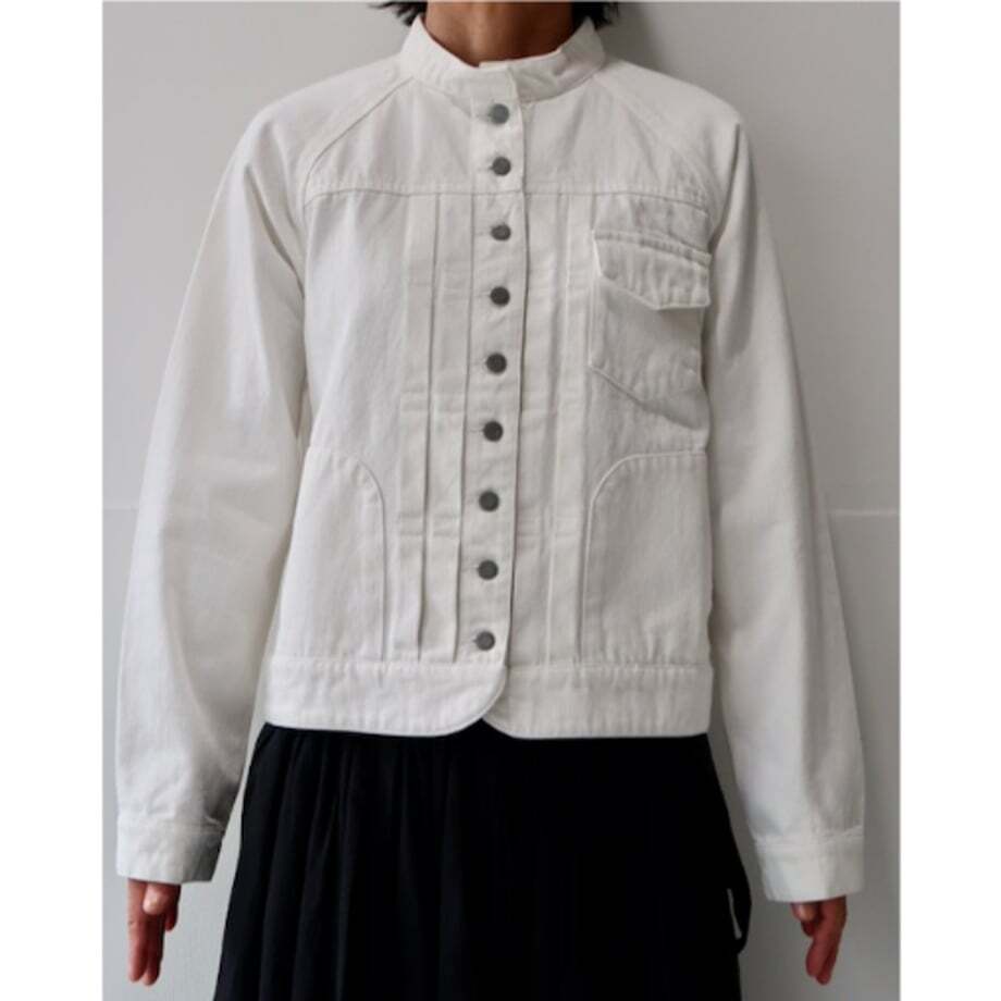 定番の「BASIC DENIM JACKET」と同じデザインの、ホワイトバージョンです。