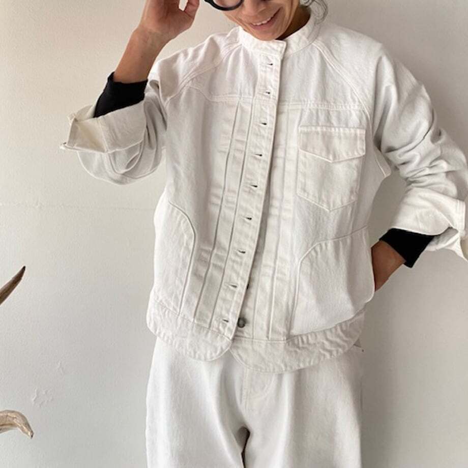 自分の着たい形を追求していったデニムジャケットが着てみると、スカートにもパンツにもバランスよく着られて、年代問わず愛されるアイテムとなりました。