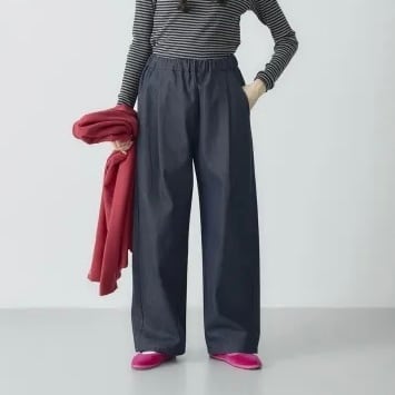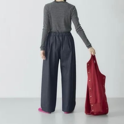 「デニム」といえば5ポケットパンツですが、ウエストゴムパンツに慣れてしまった今となっては、本音を言えばちょっと苦しくて着る気分にならない日もあります。