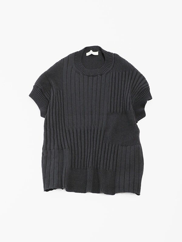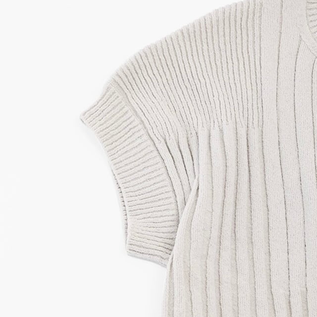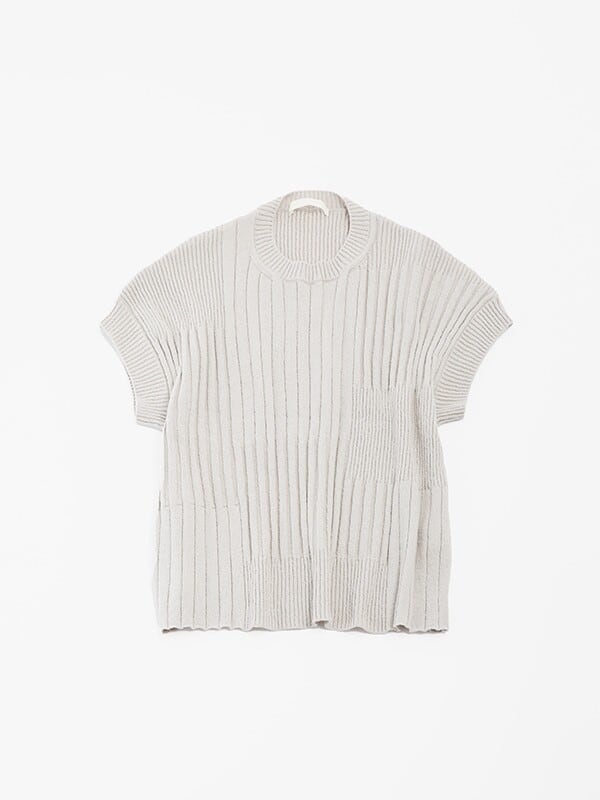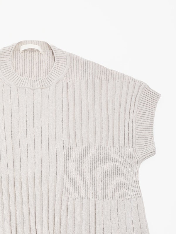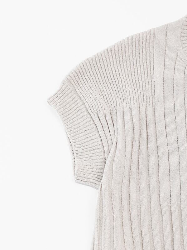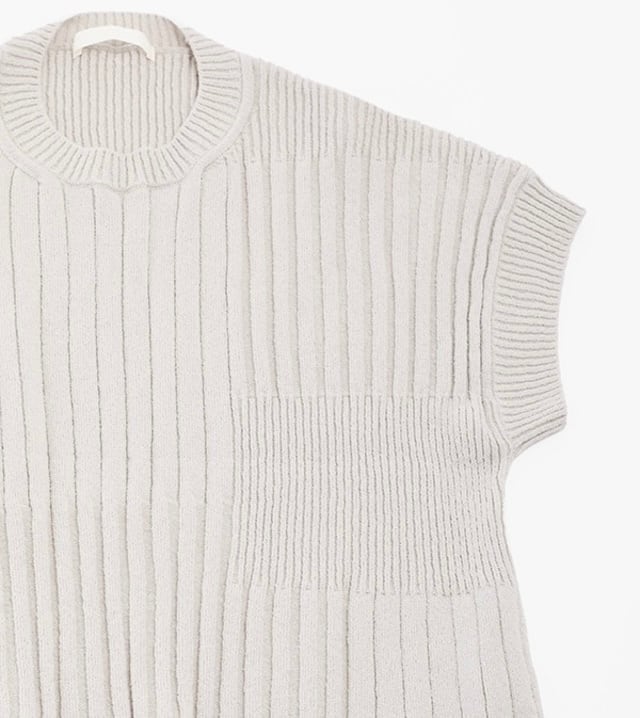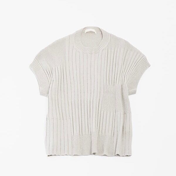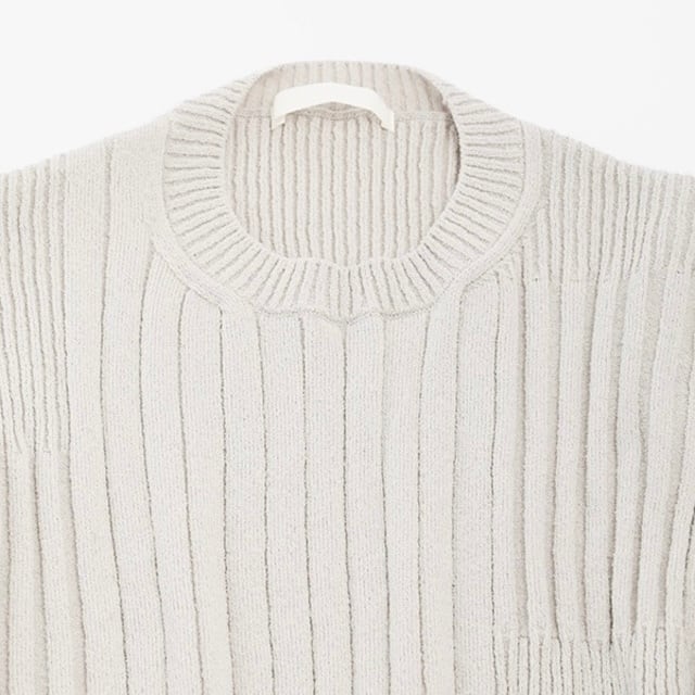 太さの異なるリブ編みをランダムに組み合わせた、表情豊かなテクスチャーのニット。