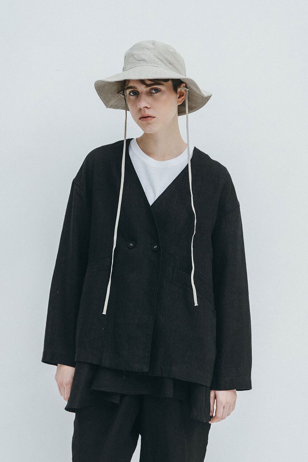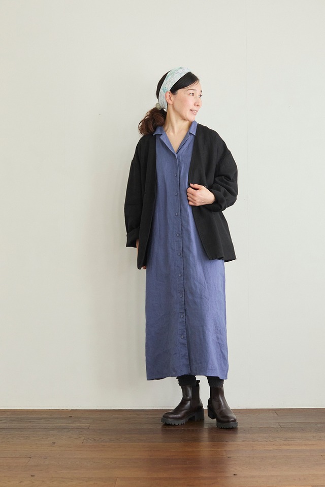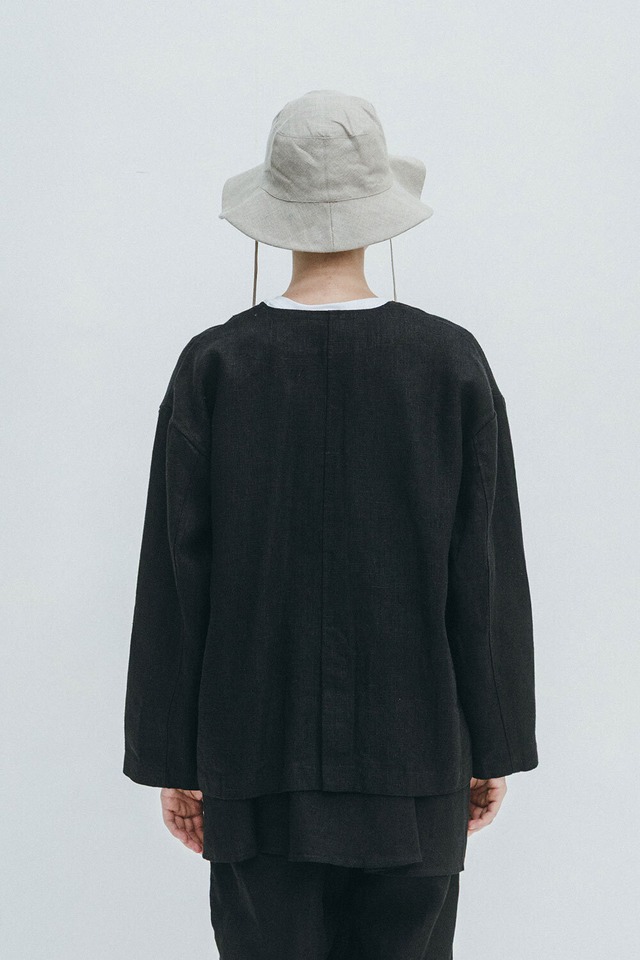 fog linen work|コーラノーカラージャケット(厚地リネン)col.ブラック