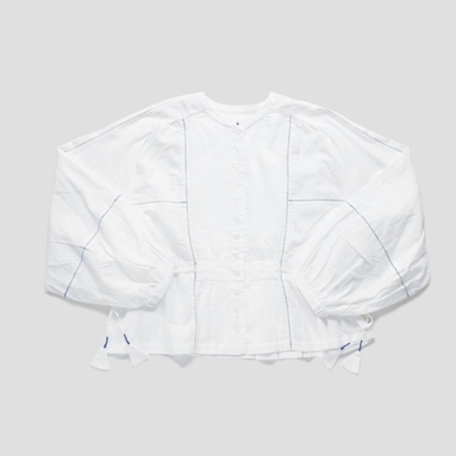 ボリュームのある袖と刺繍が印象的なコットンブラウス。