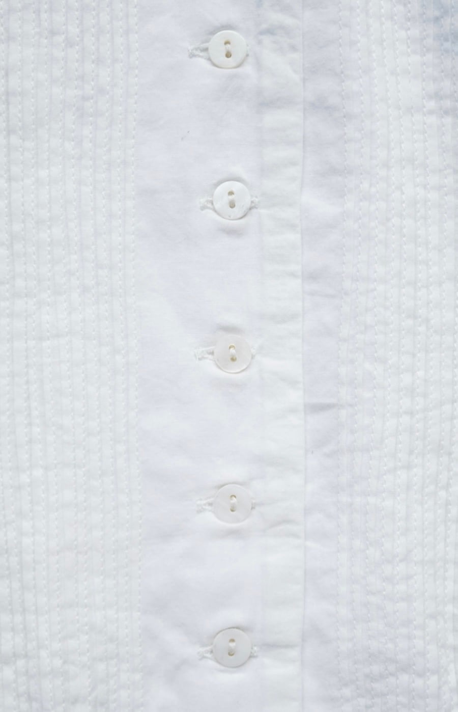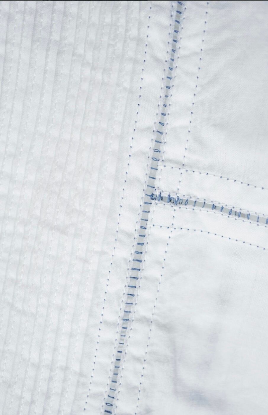 身頃には細かなハンドピンタックとラダー(ハシゴ)刺繍が施されています。