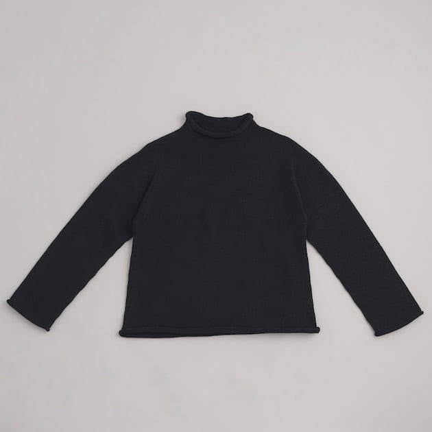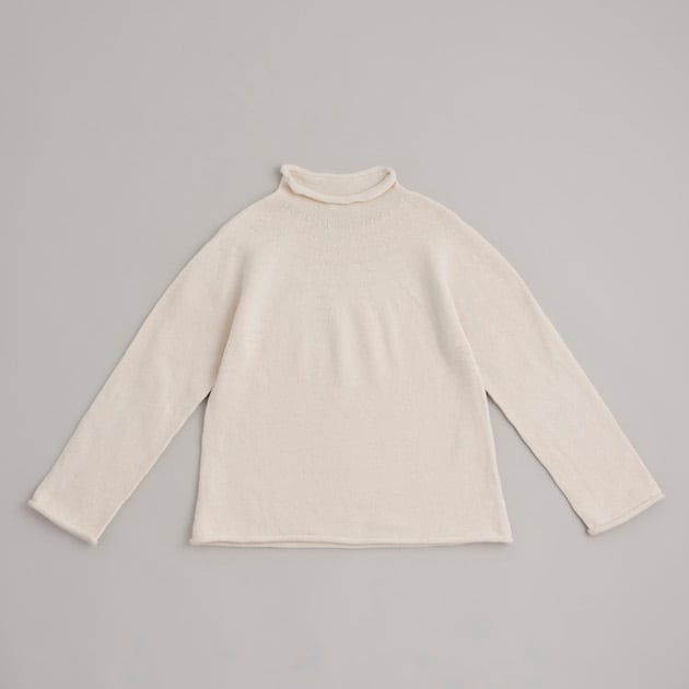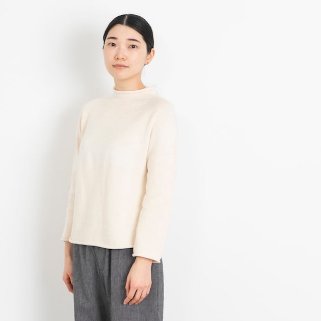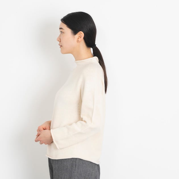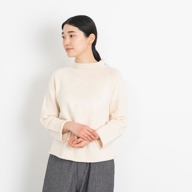 クルーネックより少しだけ立ちあがった衿のデザイン。