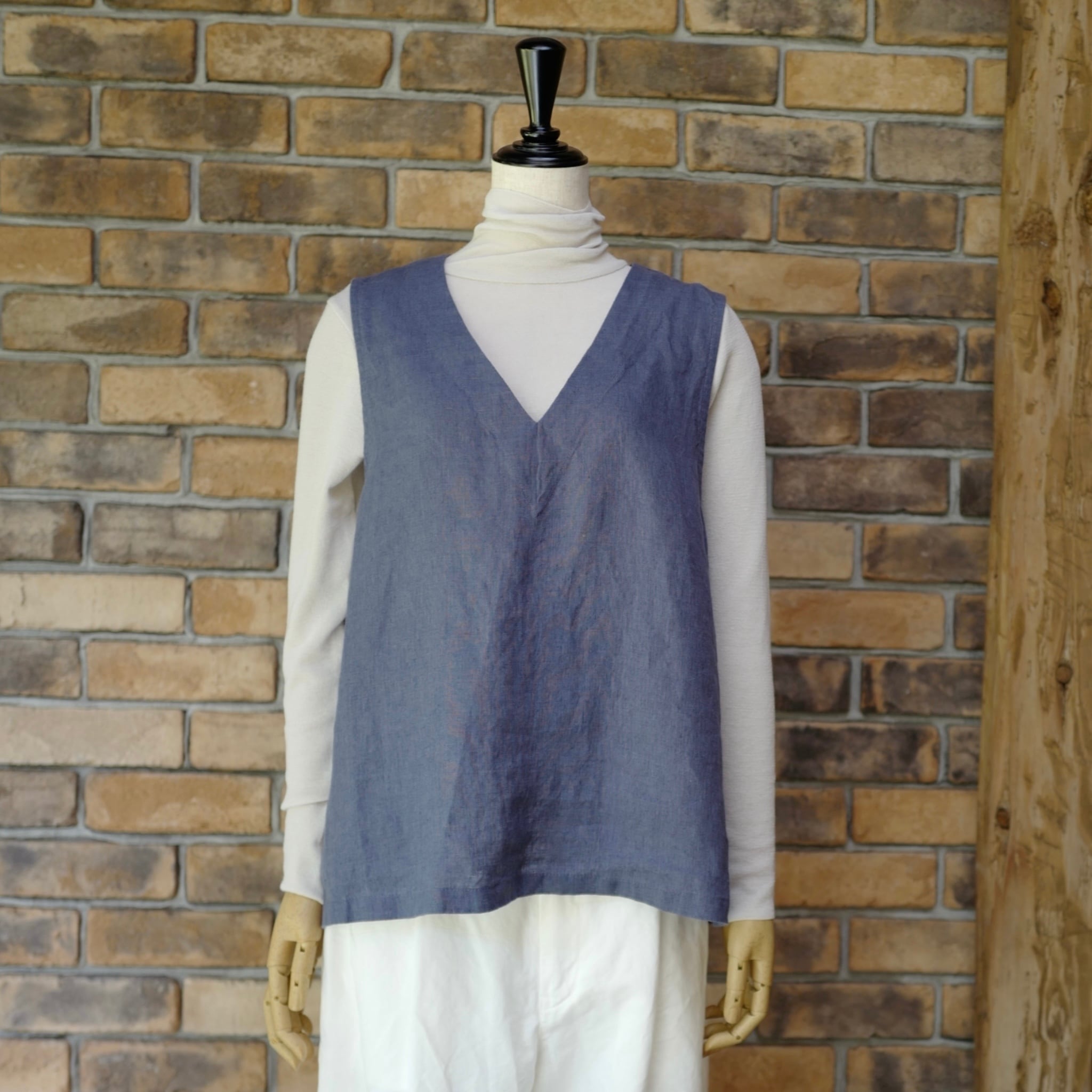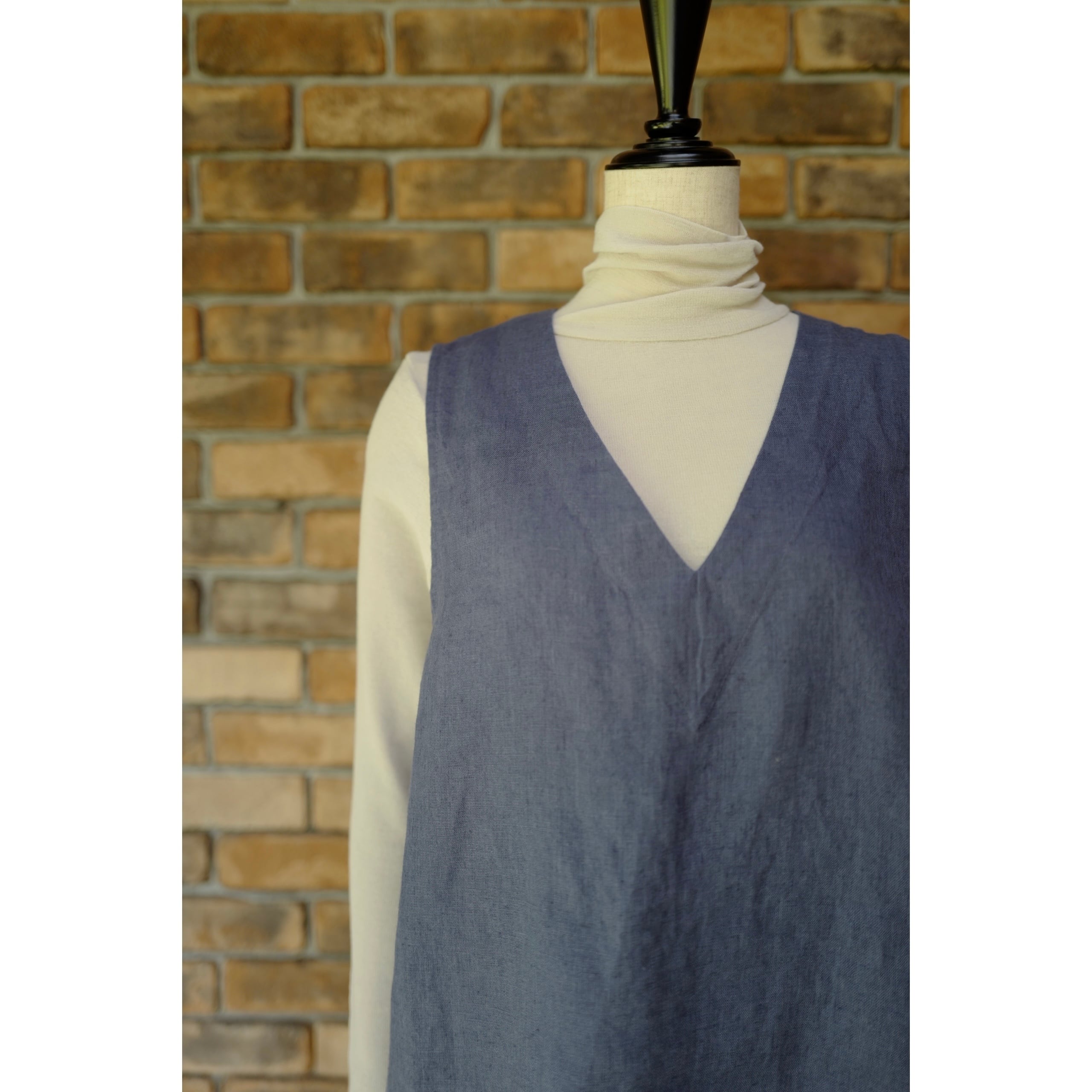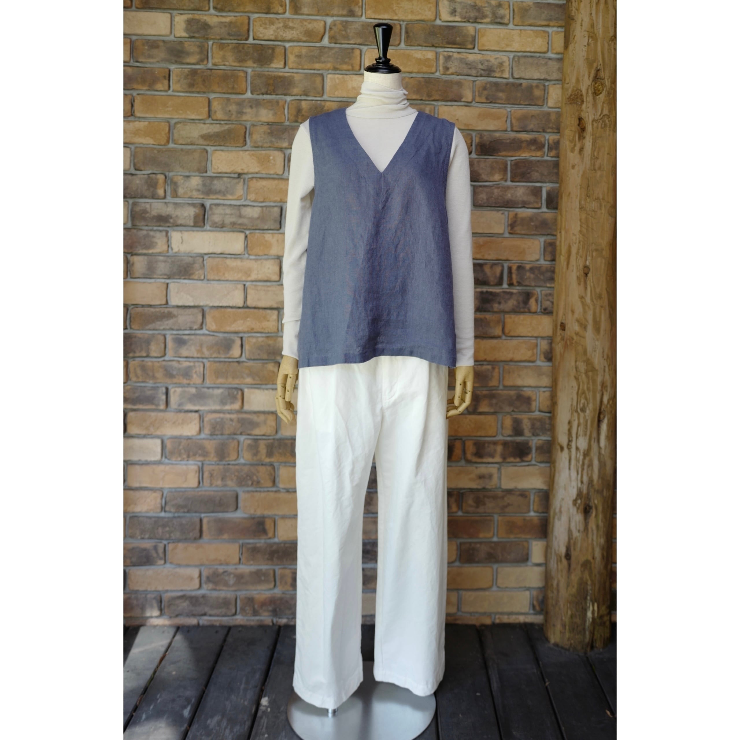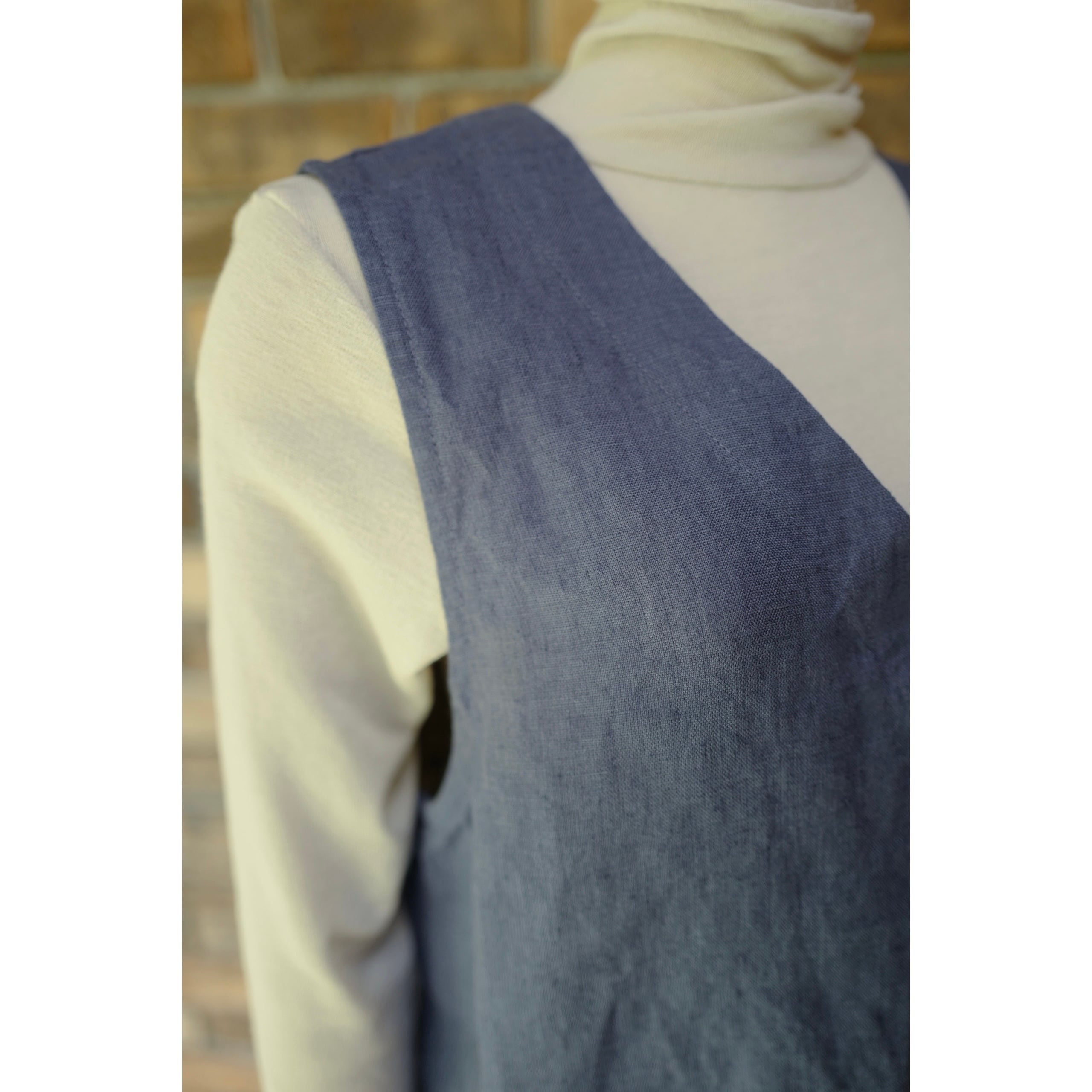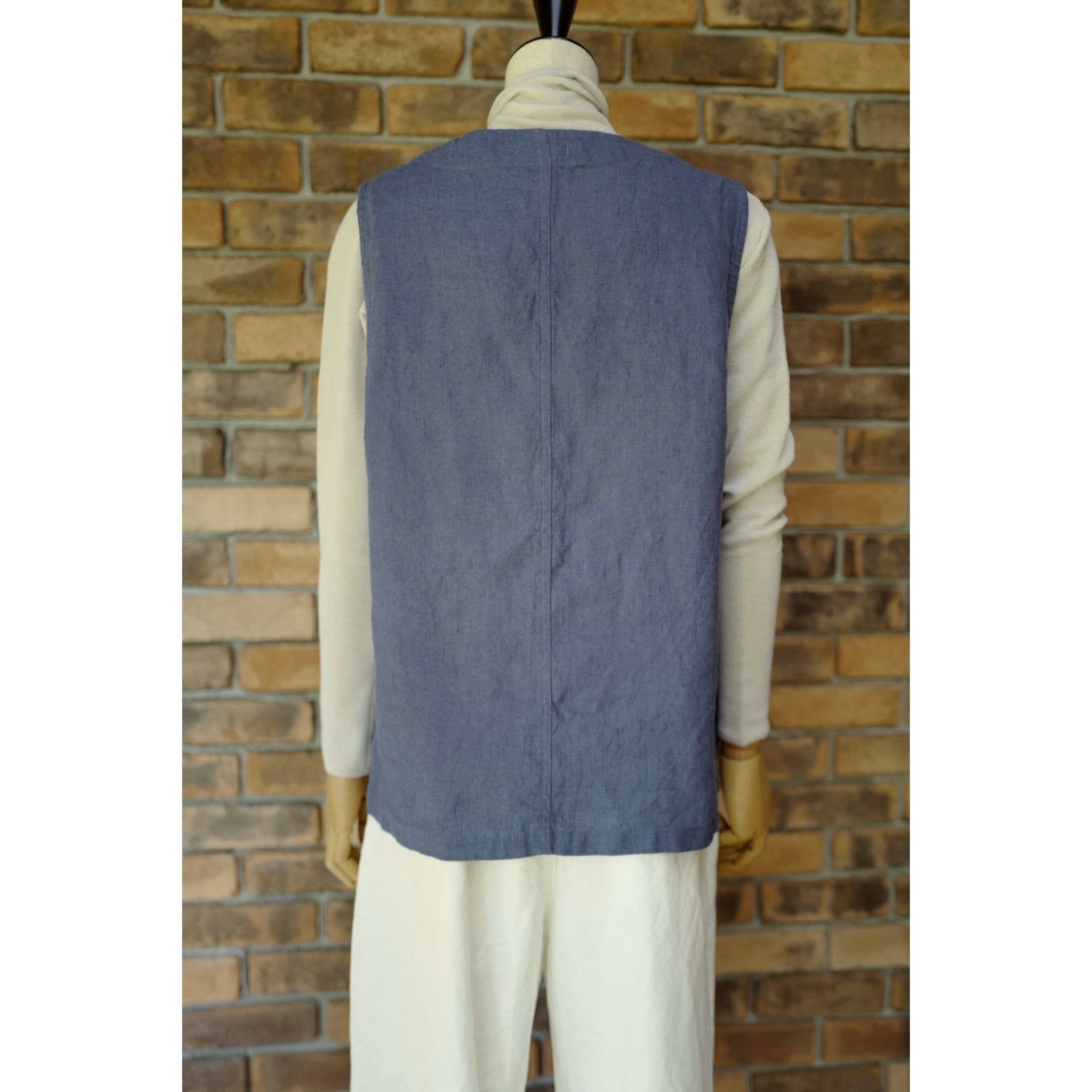《別注》fog linen work|普通地リネンVネックベスト・ジレ(col.ブルーフェメ)