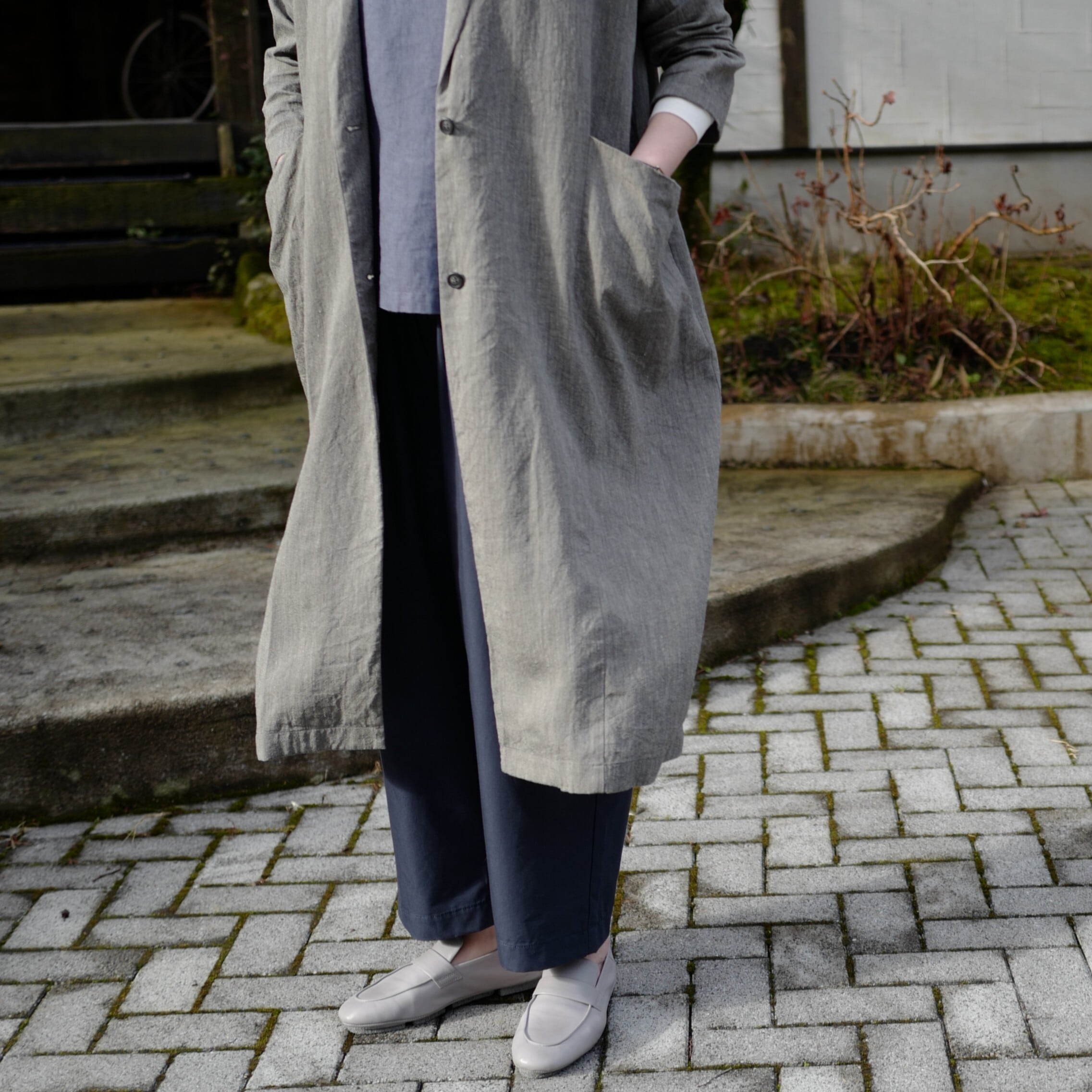 ドライなリネンに"和紙糸"を合わせ、適度にハリ感のある生地を使用したシリーズ。