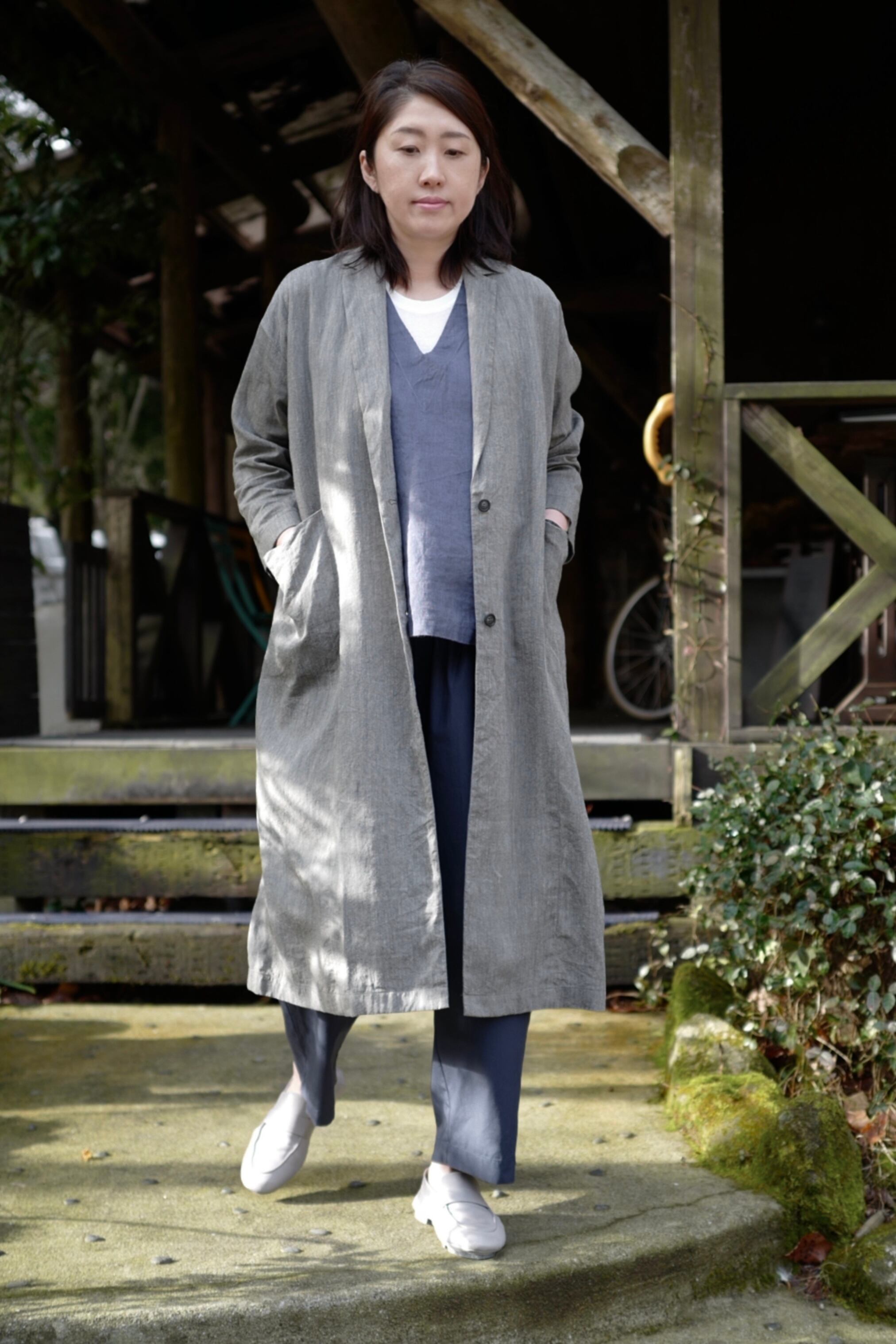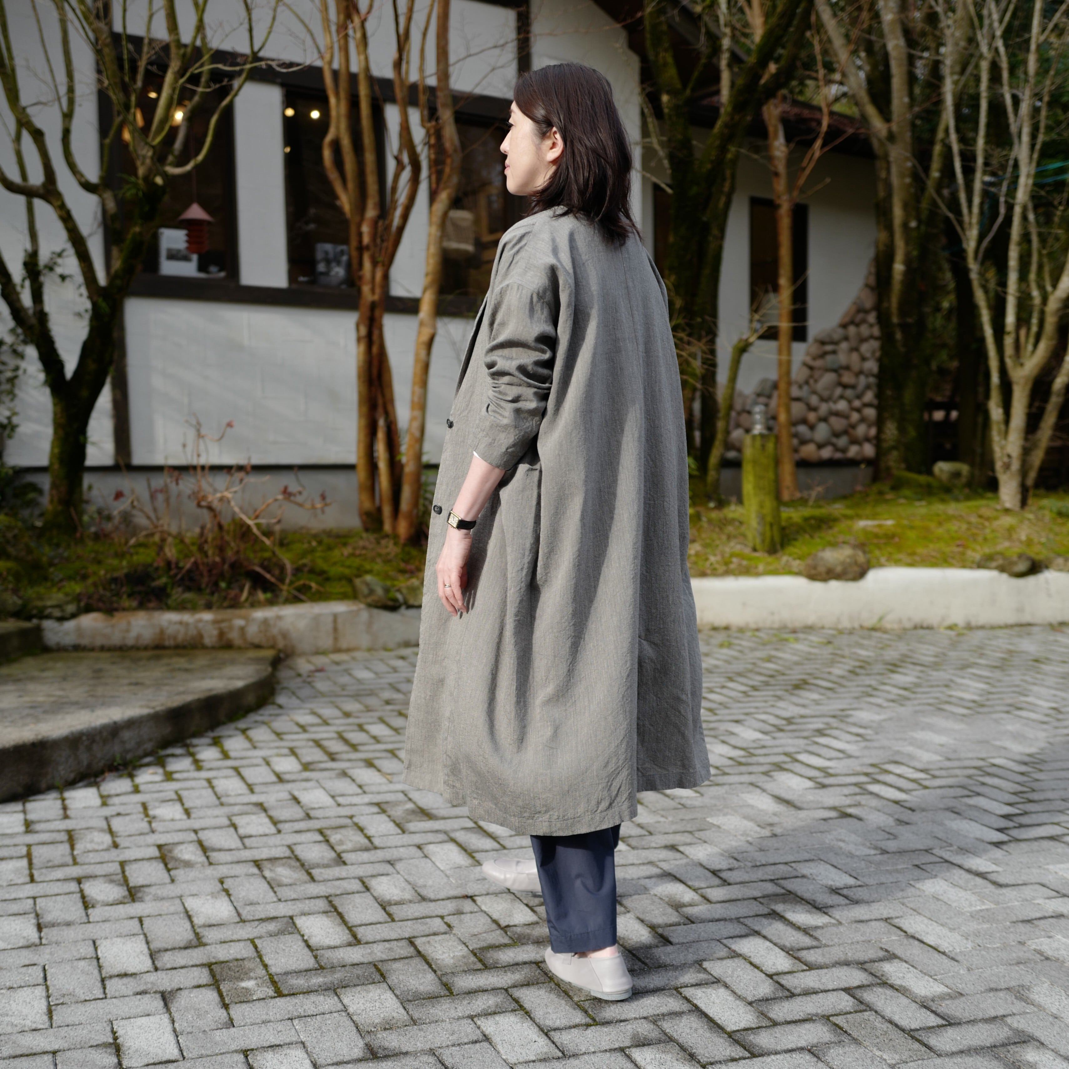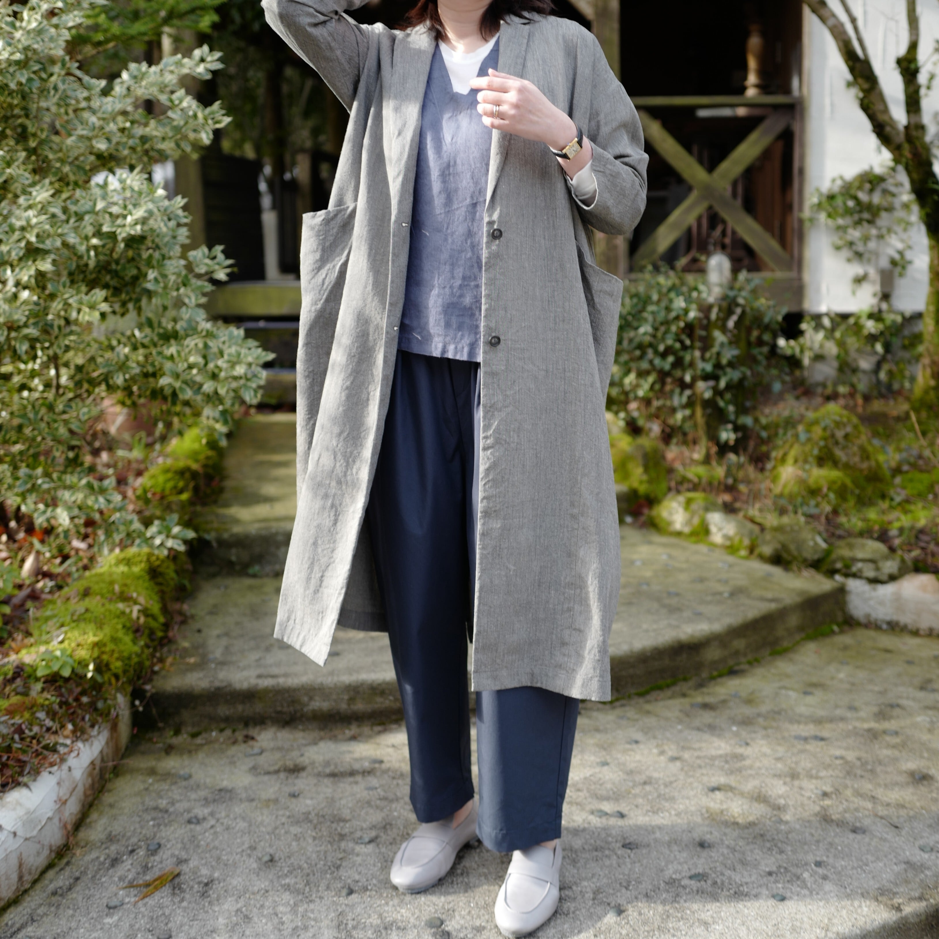風通しの良いゆったりとした着心地のロングジャケット。