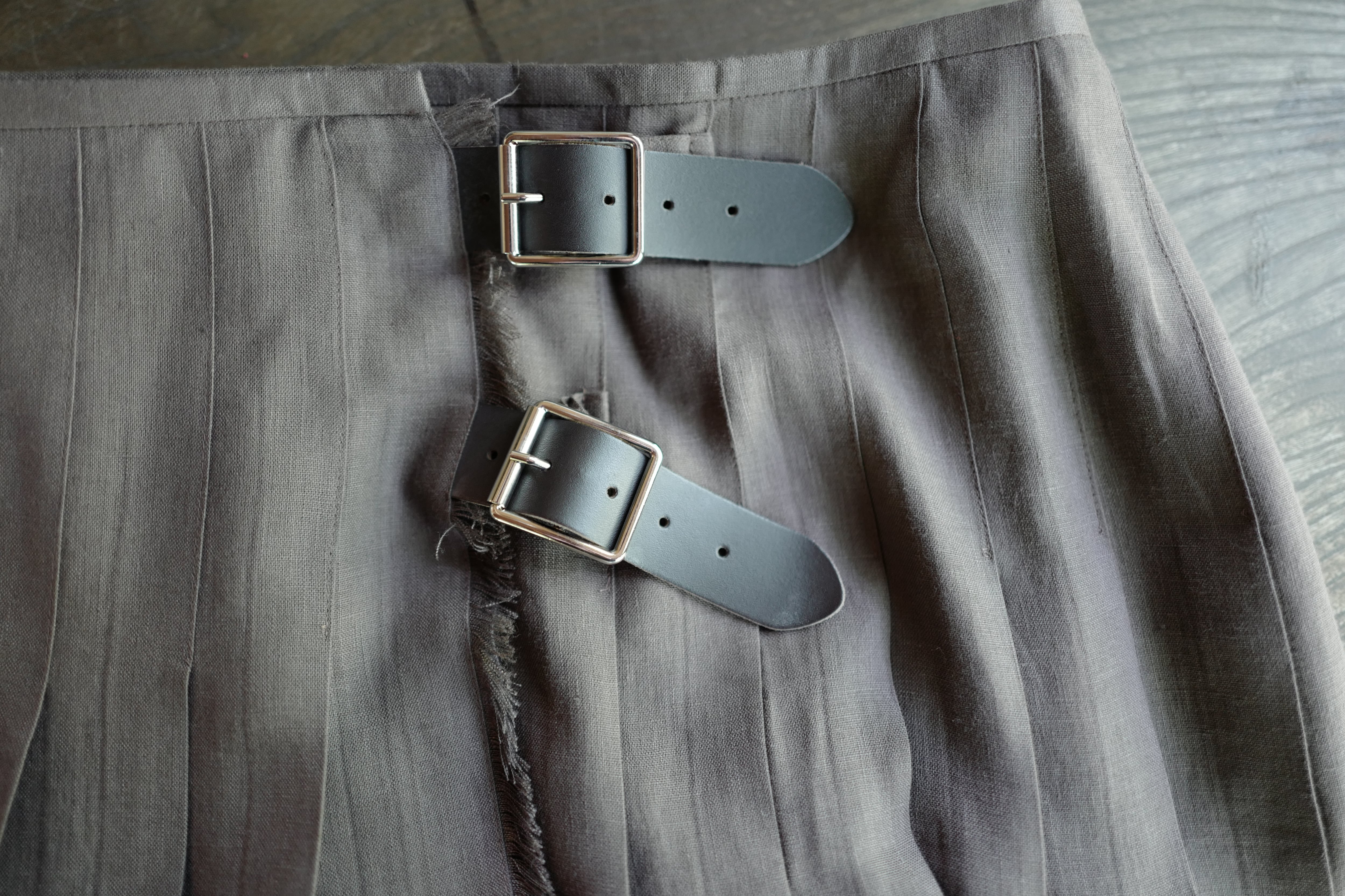 ※一般的なキルトスカートは正面のラップ部分はプリーツなしで、後身にだけプリーツが施されています。