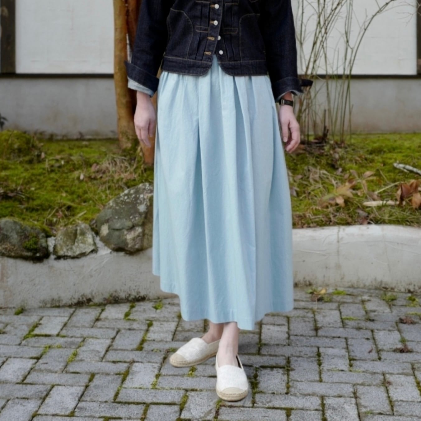 ふんわりと広がるシルエットが軽やかな動きを生み、シンプルなトップスと合わせるだけで着こなしが決まります。