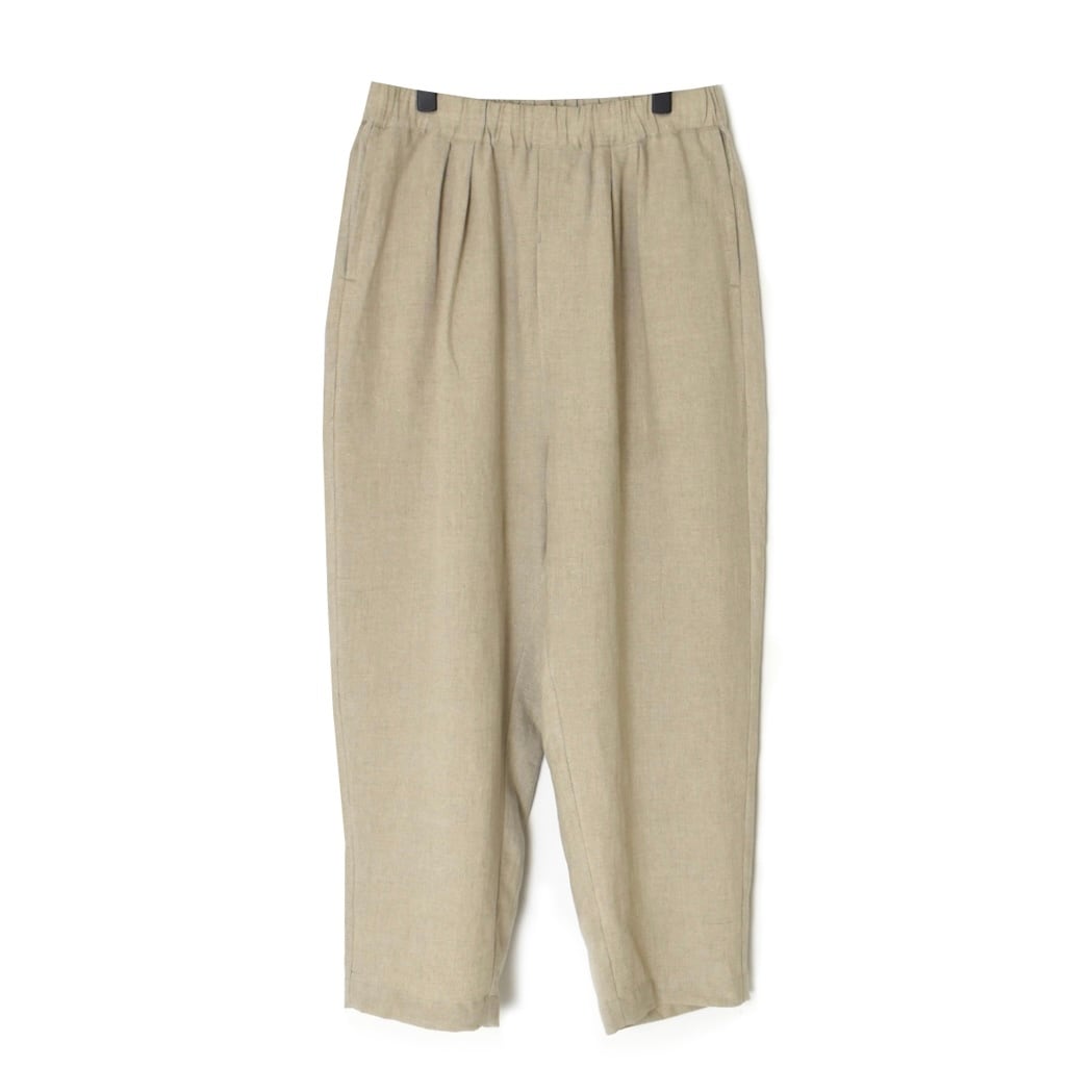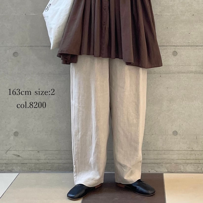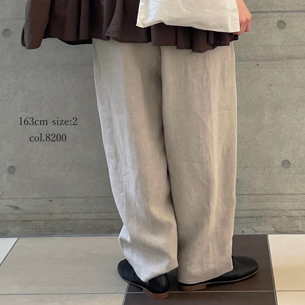 今年新たに仲間入りしたのは、フレンチリネンのタック入りテーパードパンツです。