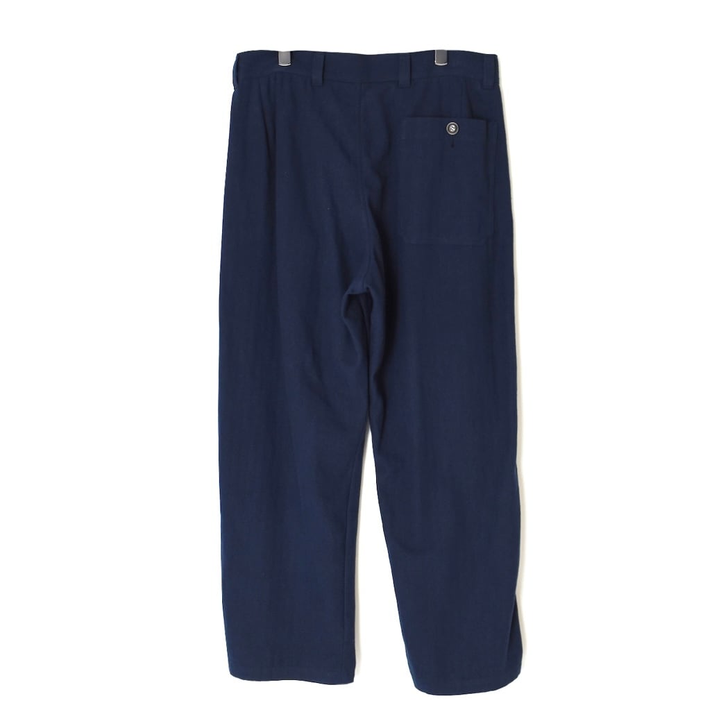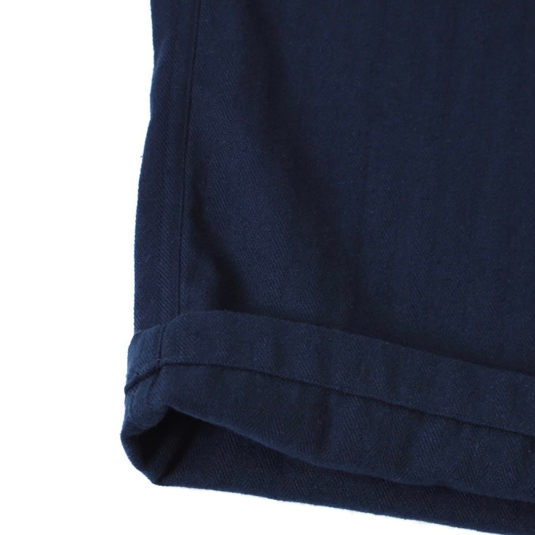 ARMEN|COTTON LINEN HERRINGBONE ONE TUCK PANTS-NAVY