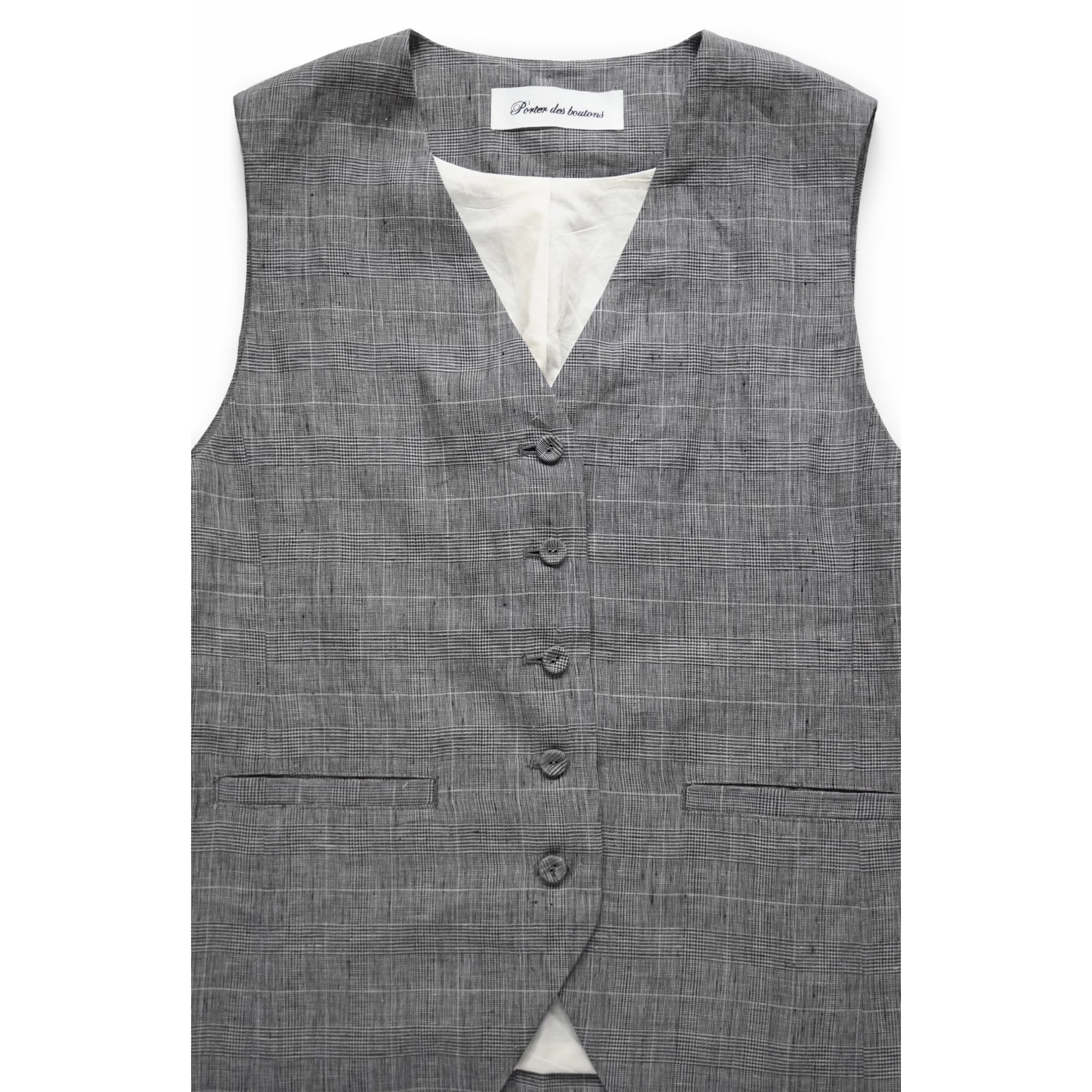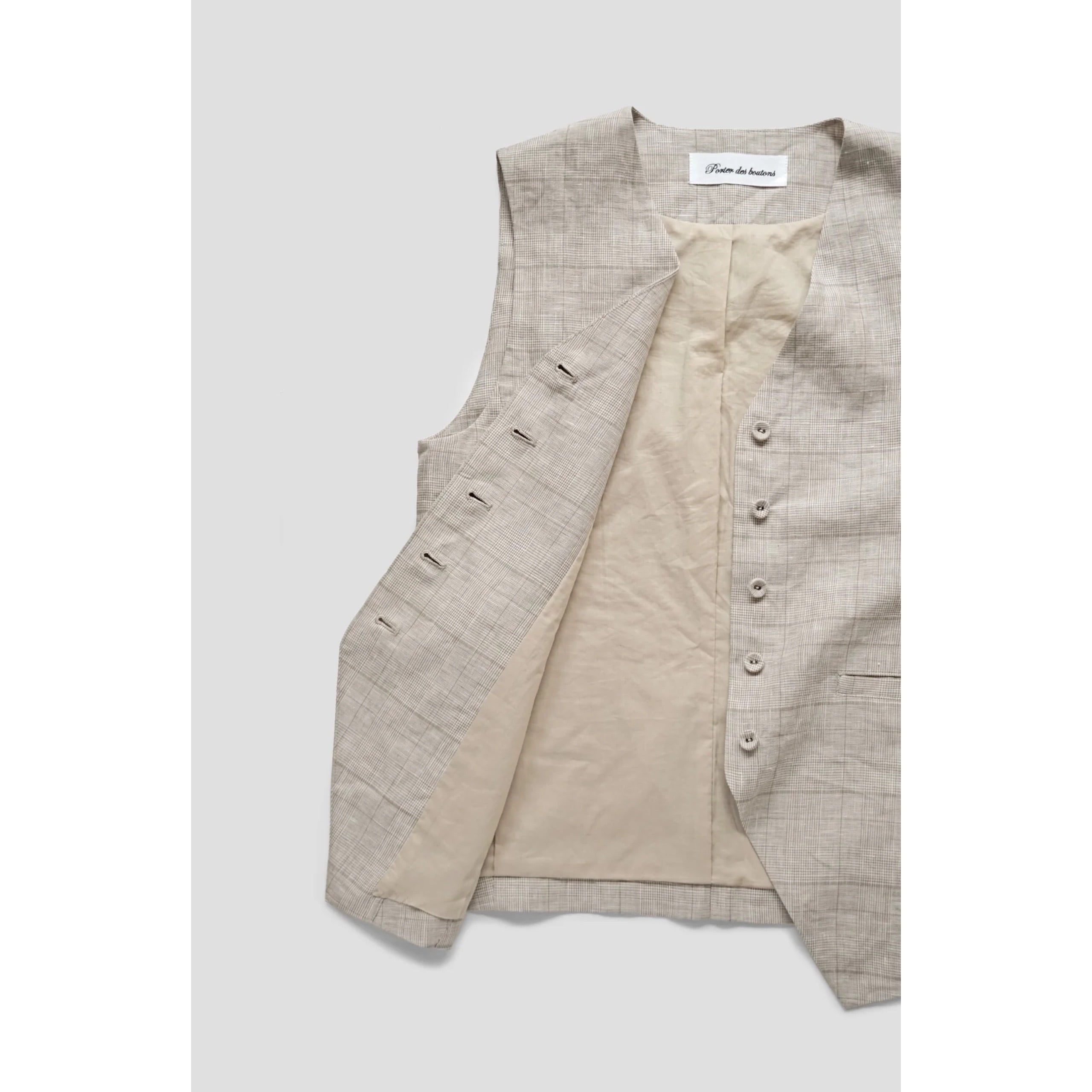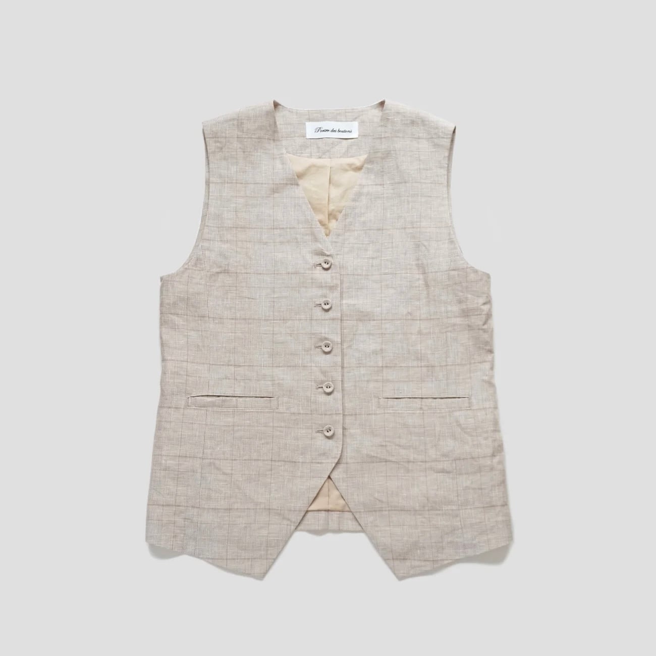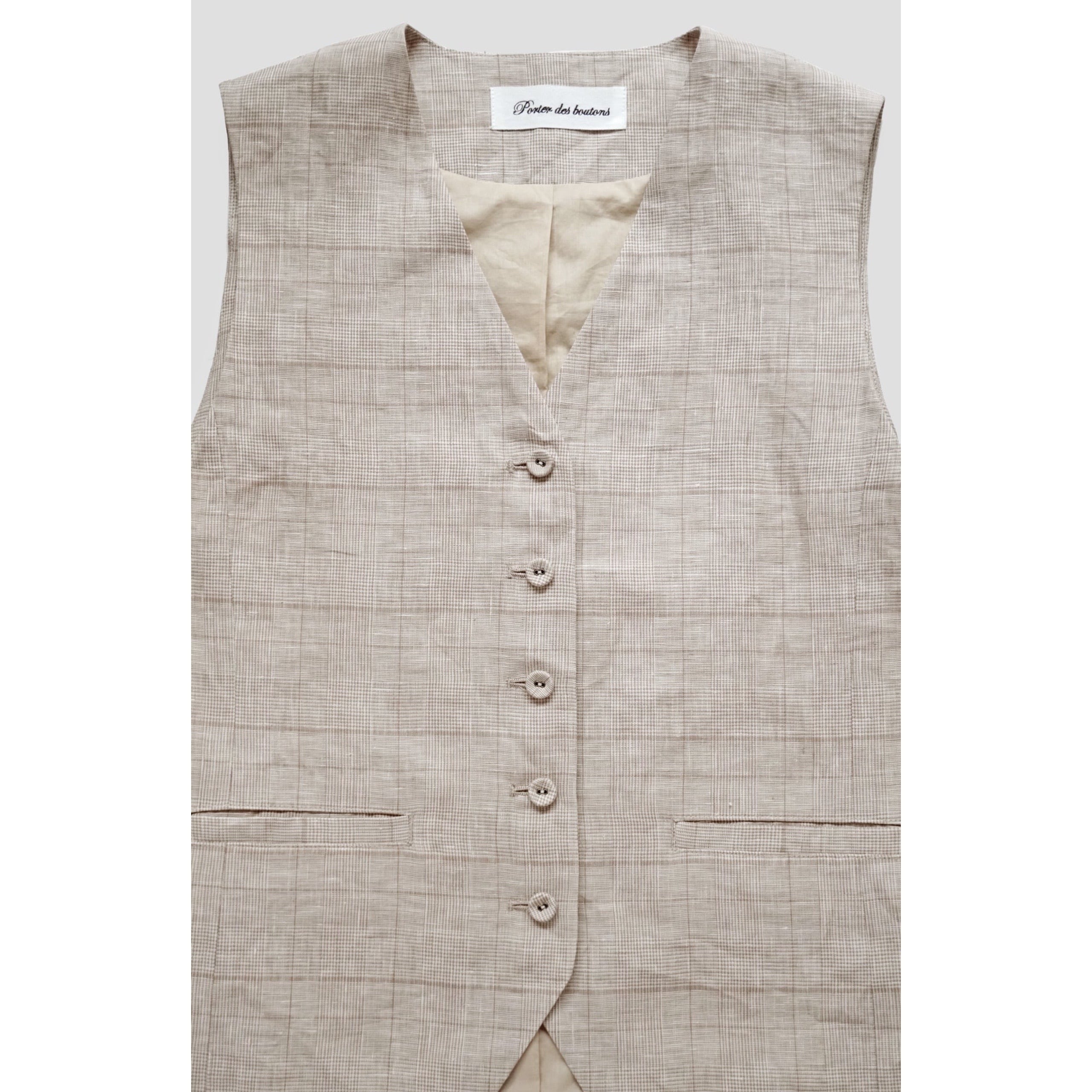 Porter des boutons │リネングレンチェックベスト(beige, gray)