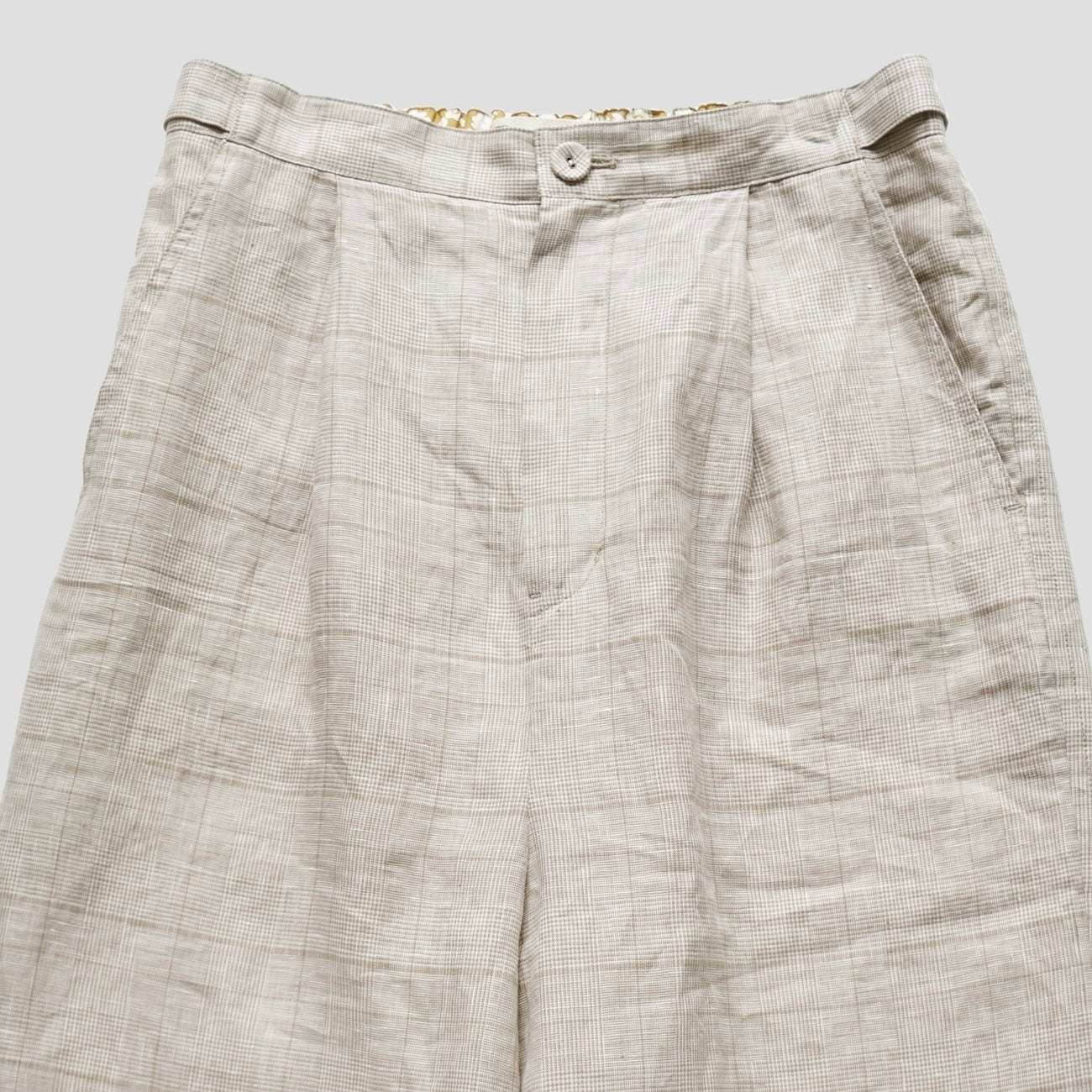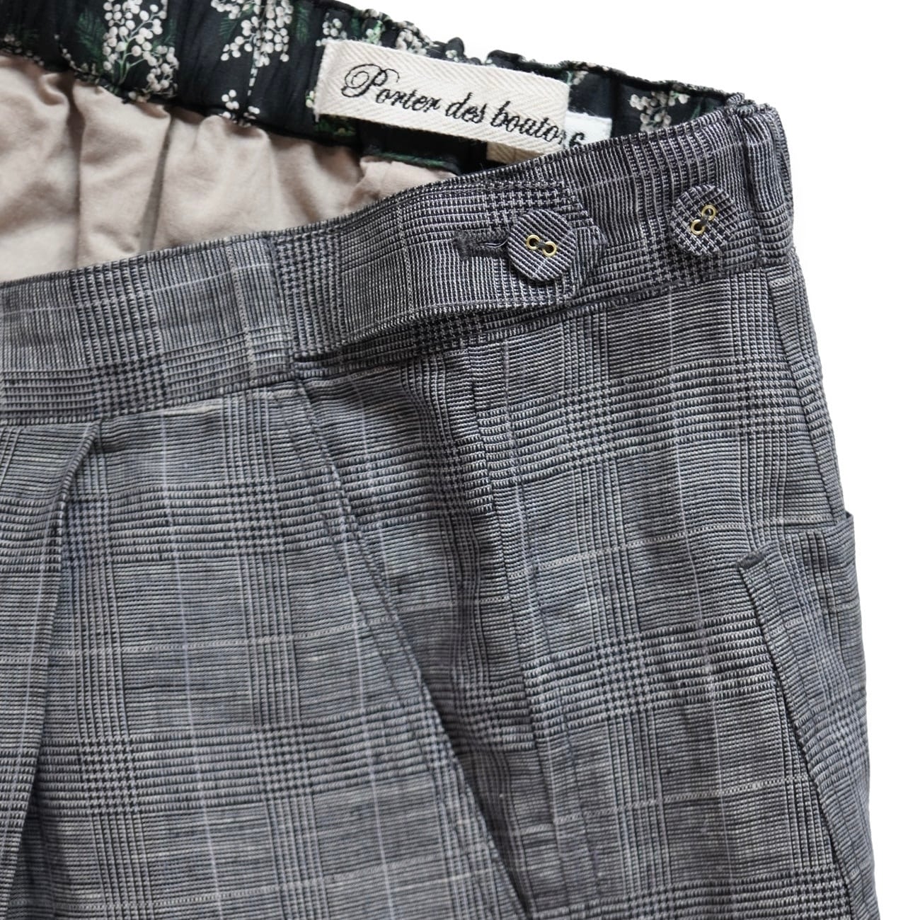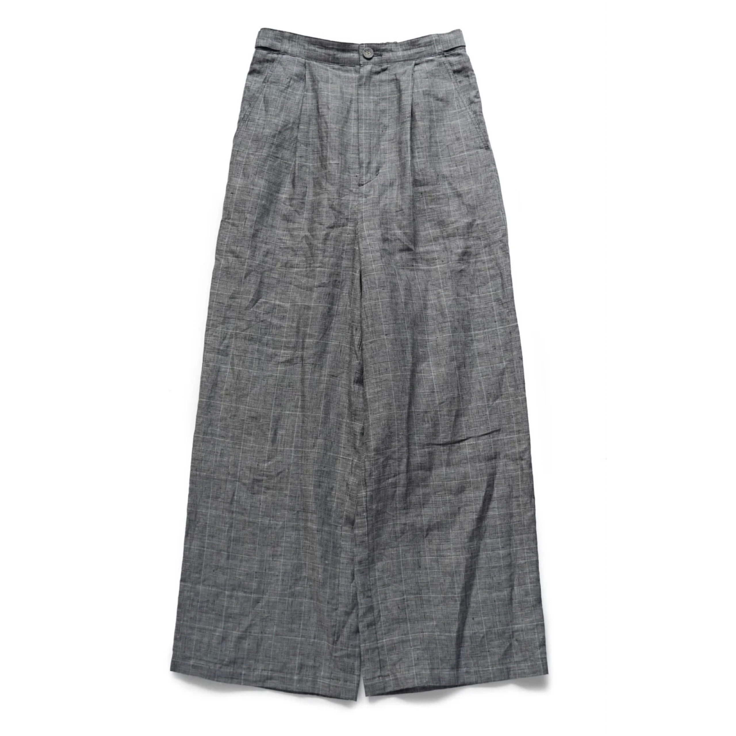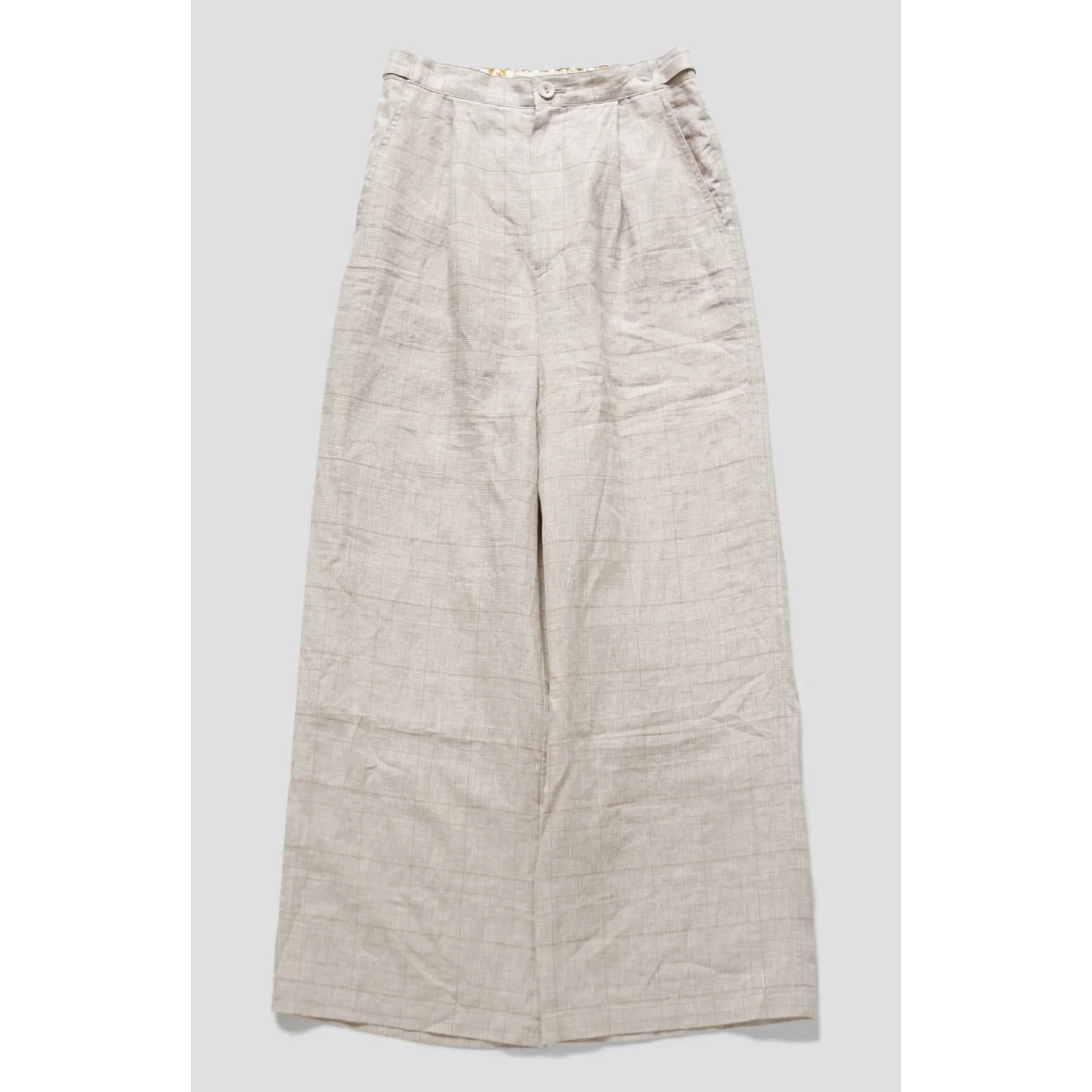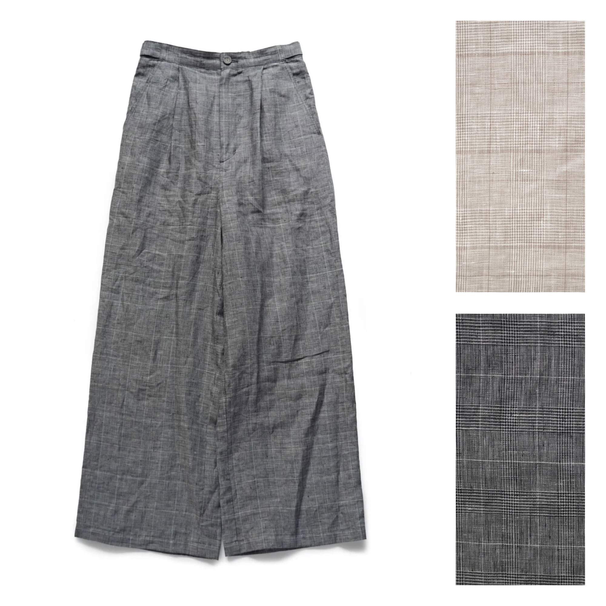 Porter des boutons │リネングレンチェックワイドパンツ(beige, gray)