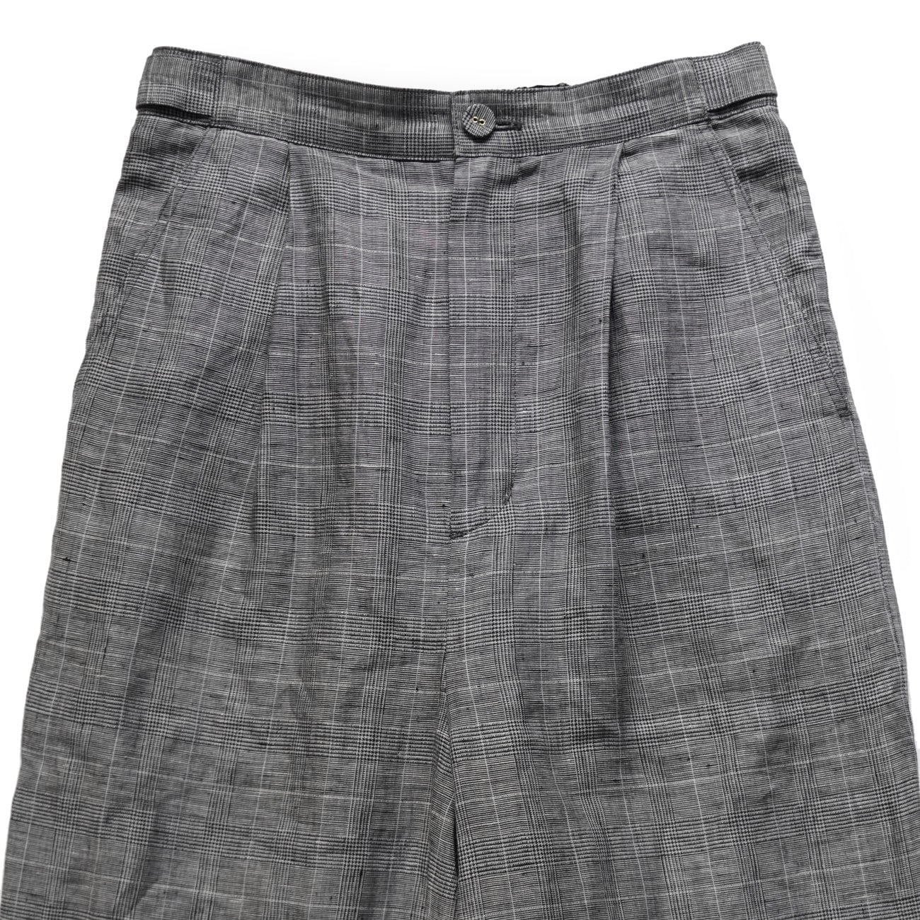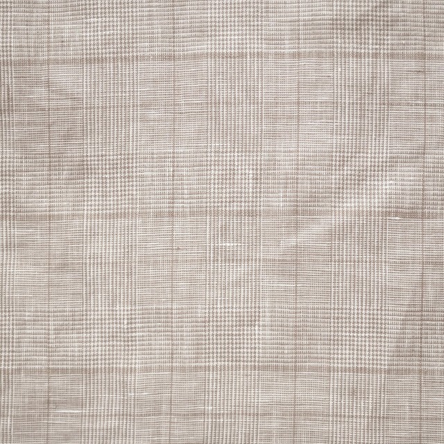 シックな色合いのグレンチェック柄を、軽さのあるリネン生地で軽快に仕上げています。