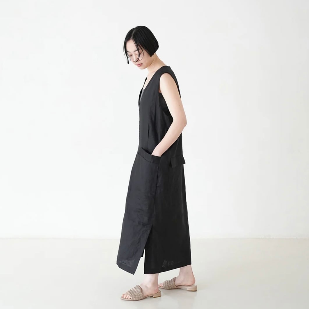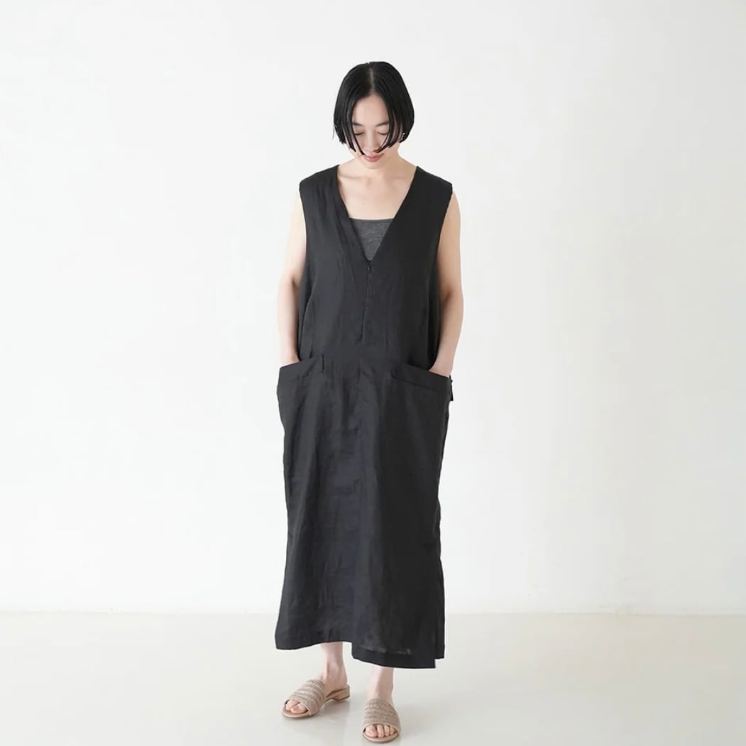 1/40リネンキャンパスを使用した軽やかなエアフロー素材を使用したジャンパースカート。