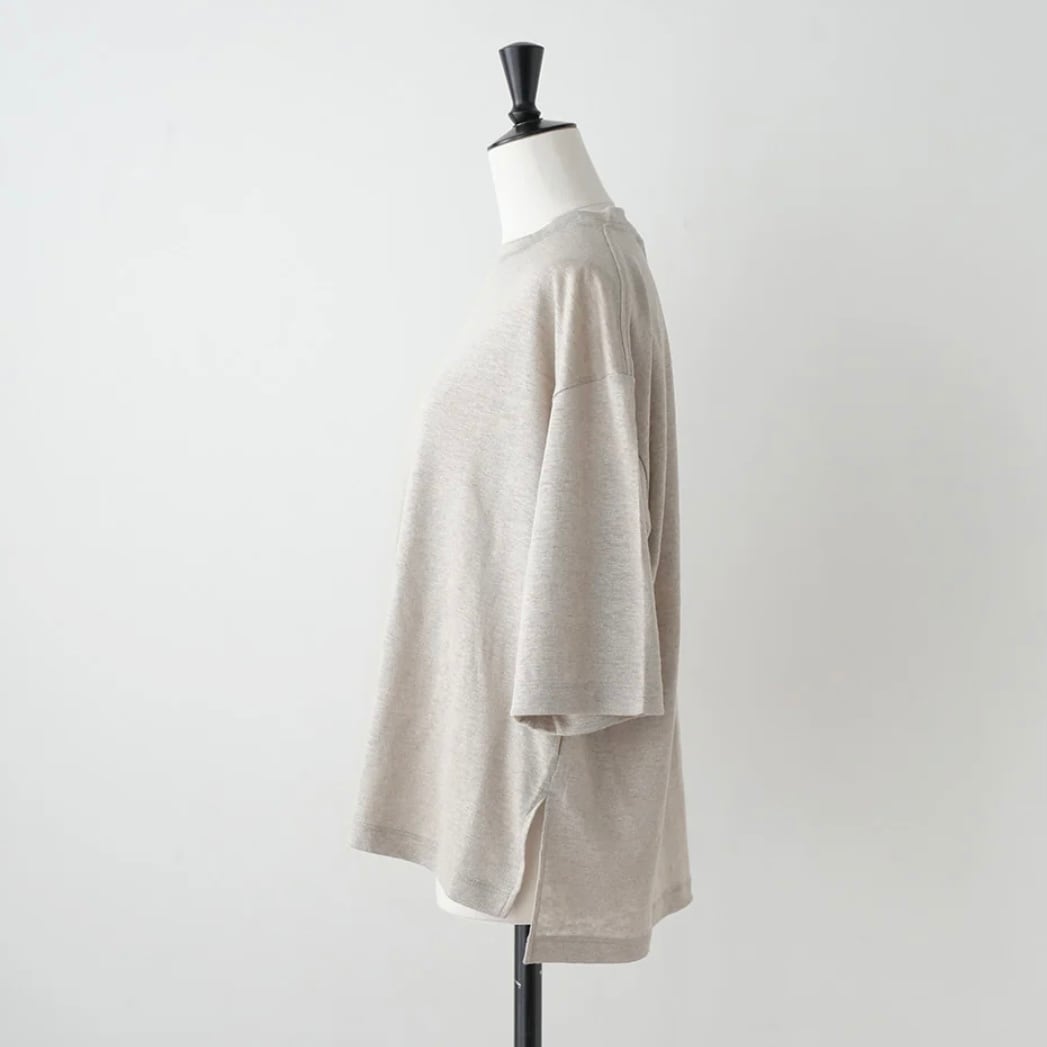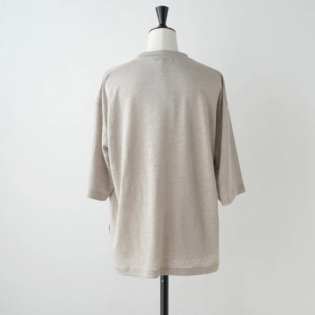 厳選されたリネンを丁寧に編みたて「リネン」本来のナチュラル感を出しながら、チクチク感が少ないソフトな風合いと綺麗な表情の新たなリネン天竺素材です。
