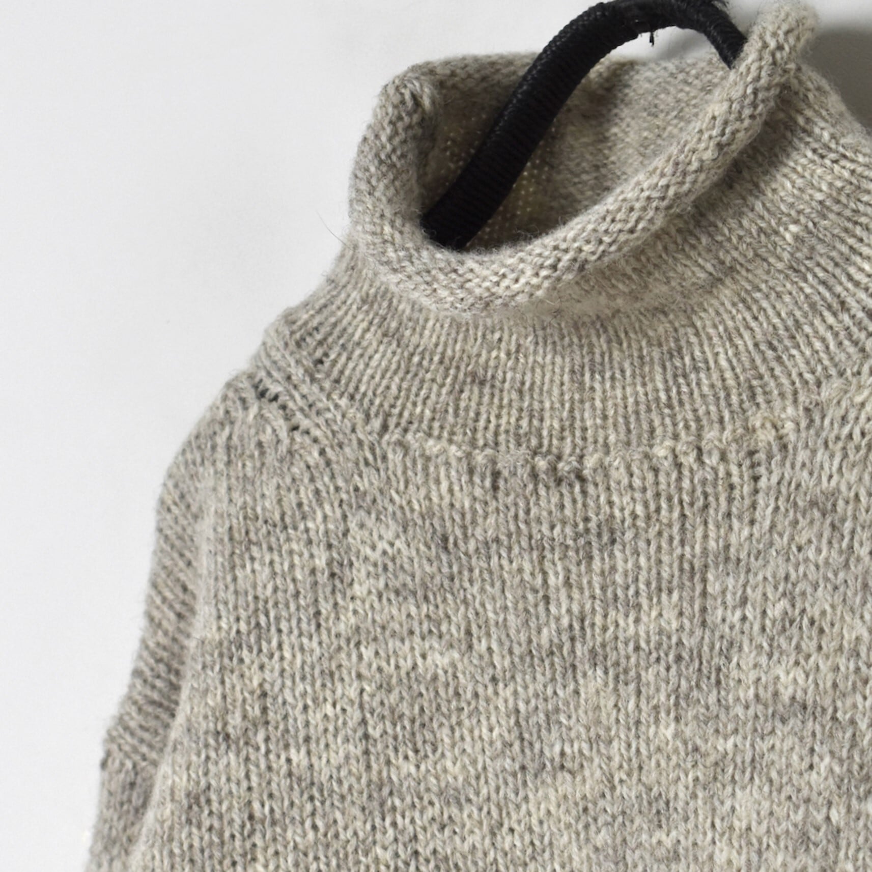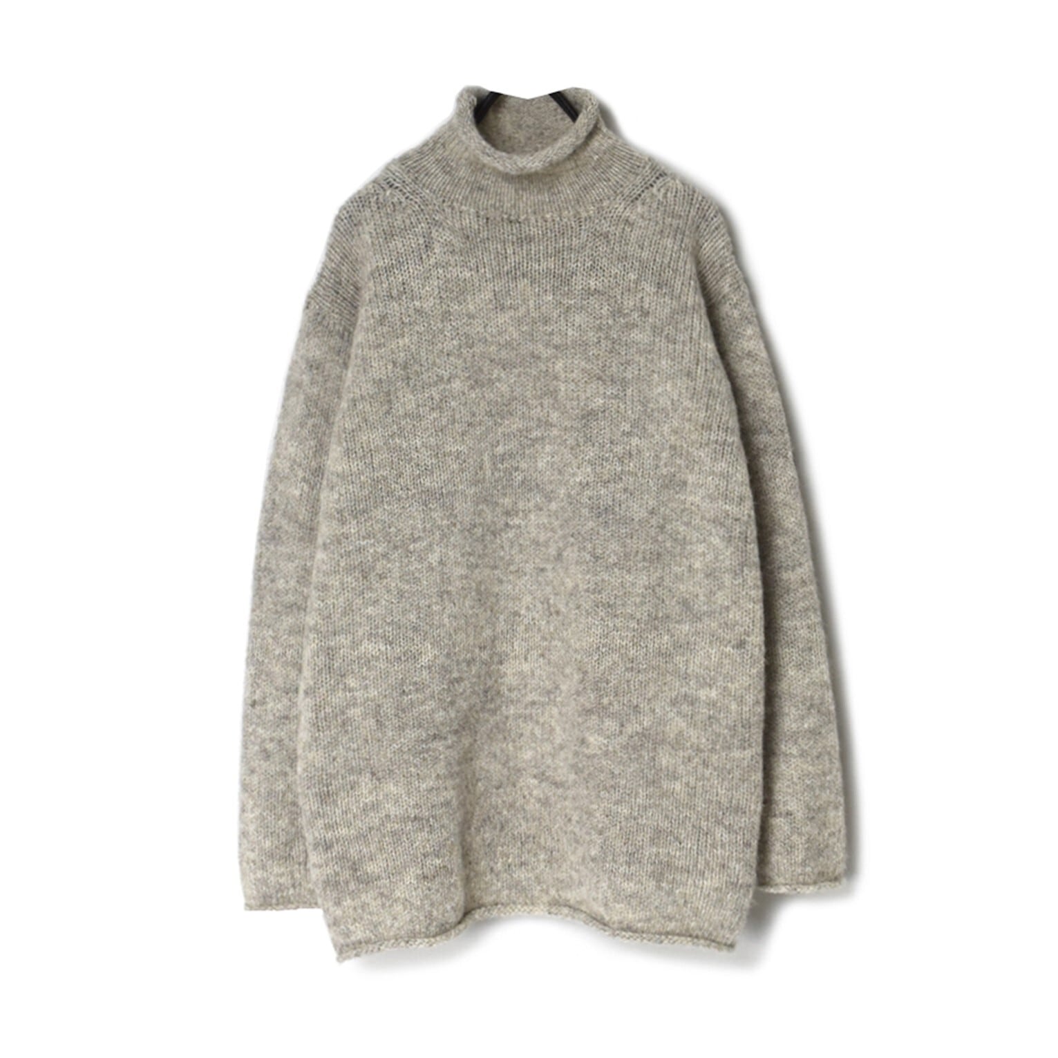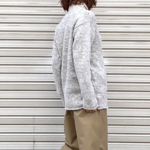 ロールネックのプルオーバーニット、シンプルでゆったりとしていて、暖かさ抜群の一枚です。