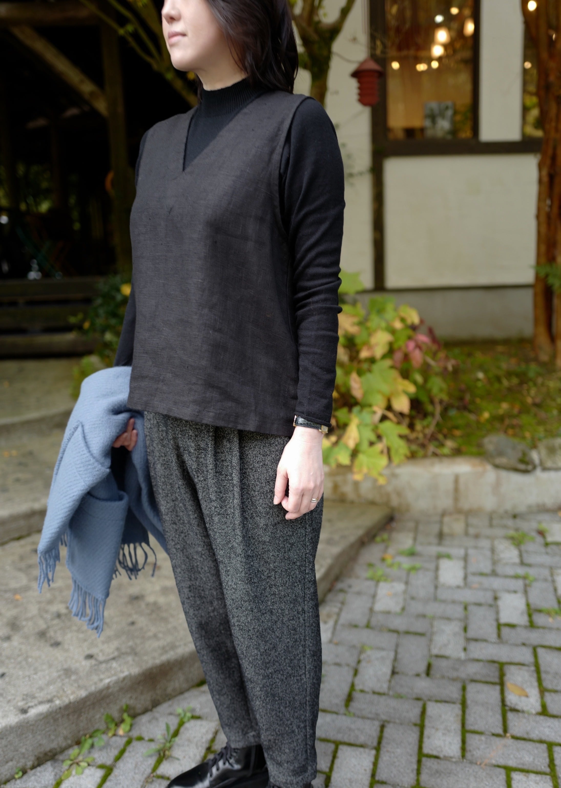 大きなポケットにお財布や鍵、携帯を入れてそのまま羽織り、外出やお散歩へ。車の中に1枚置いておくととても便利です。