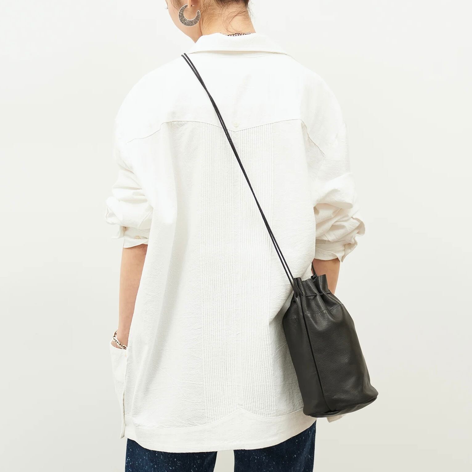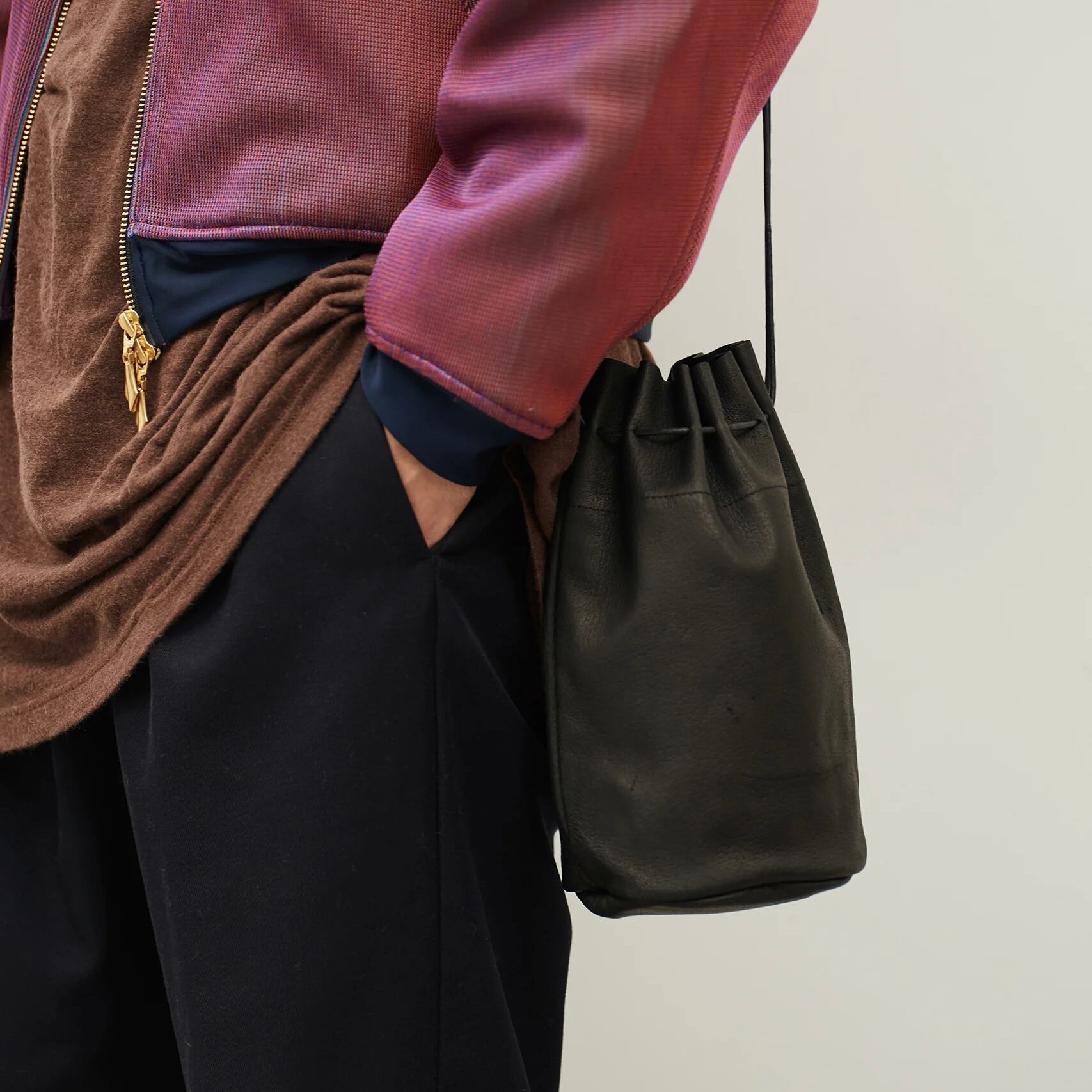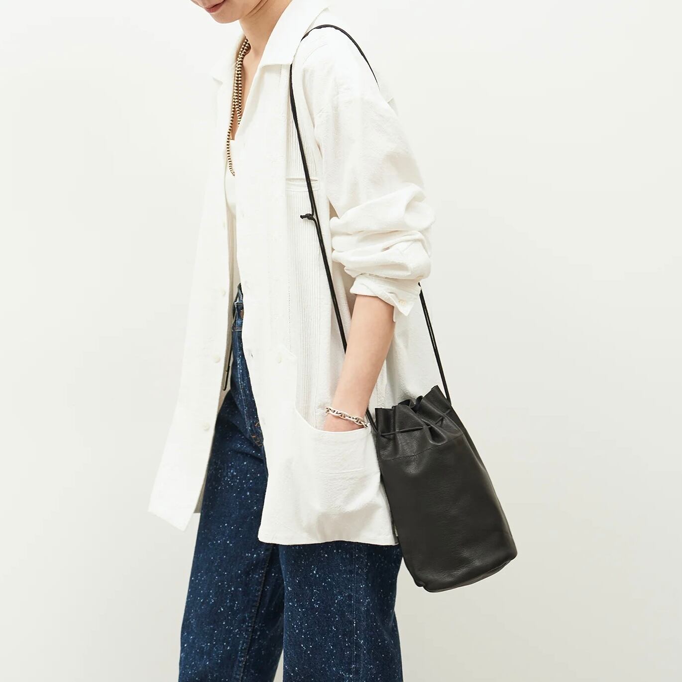 小振りで縦長の巾着スタイルが、可愛らしさとスタイリッシュ感を兼備しています。