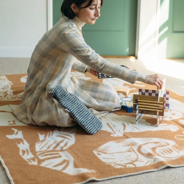 そんなことわざを表現するかのような、のんびりと気ままに過ごす、猫たちが描かれたウールブランケット。