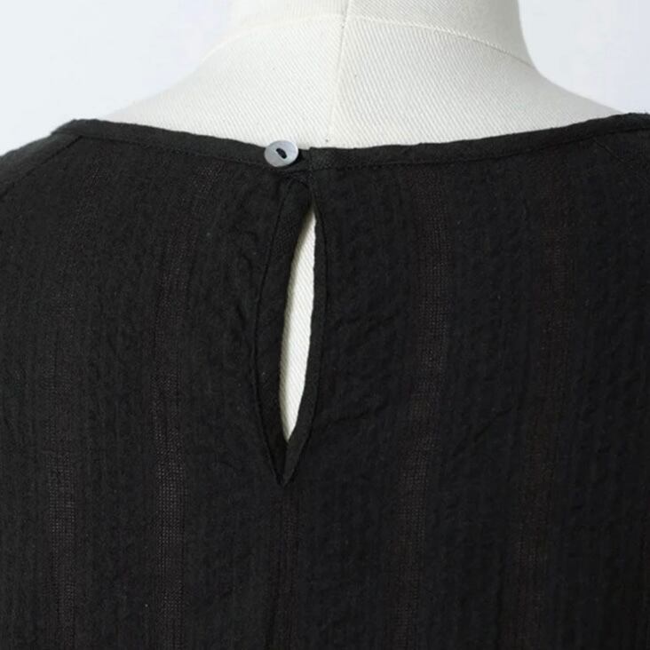 薄手でさらりとやわらかな手触りでシワになりにくく、凹凸があるため肌に触れる面積が少なく春夏にぴったりな素材です。