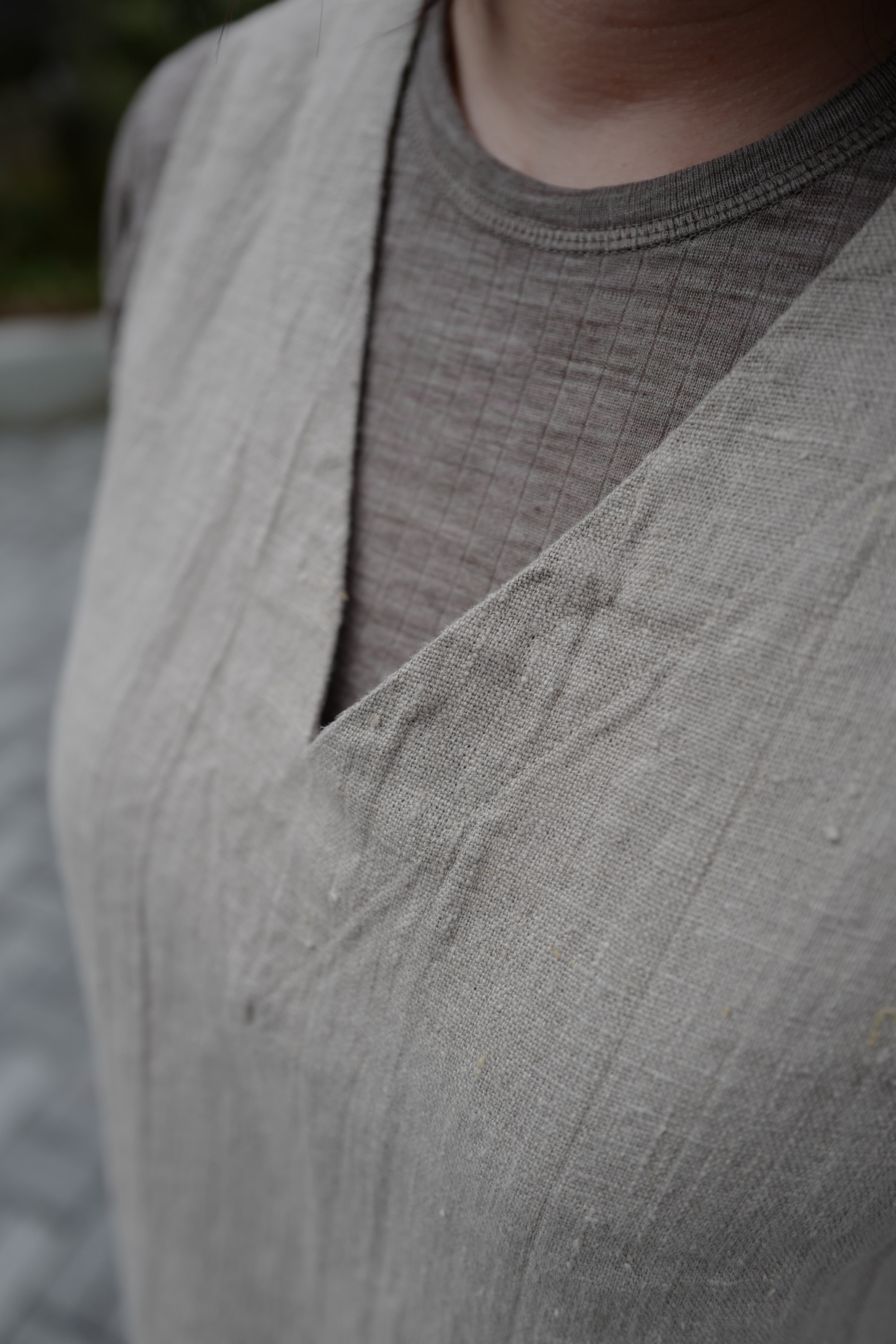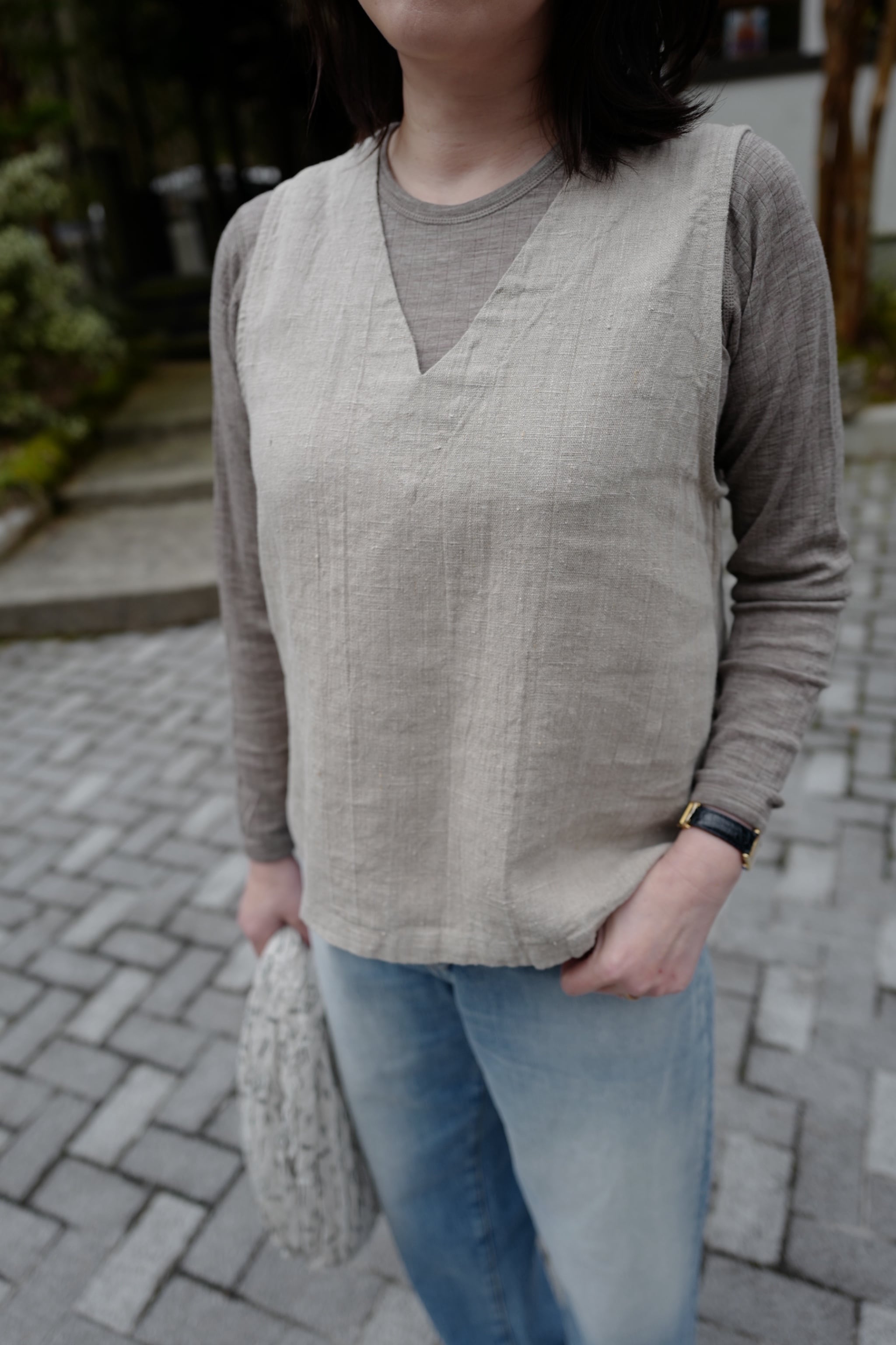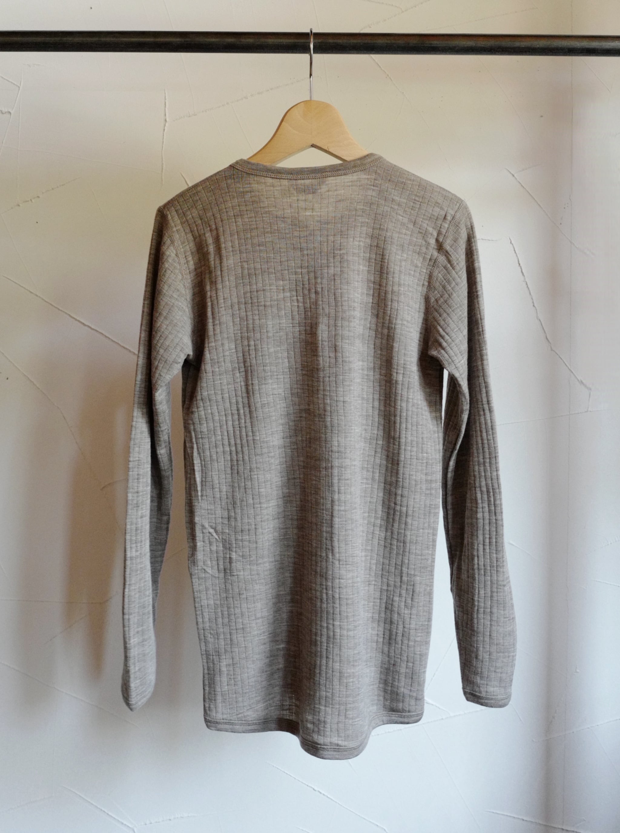 首が詰まり気味なので、アンダーウェアとしてではなく、ロンTとニットの薄手セーターの間のような役割でお召しいただく方も多いです。