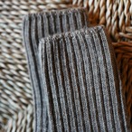 メリノウールの中でも品質が高い18-19ミクロンの細い糸を用いているため、肌着同様、素足に履いてもチクチクしない、ふんわりやわらかな肌触りのソックス。