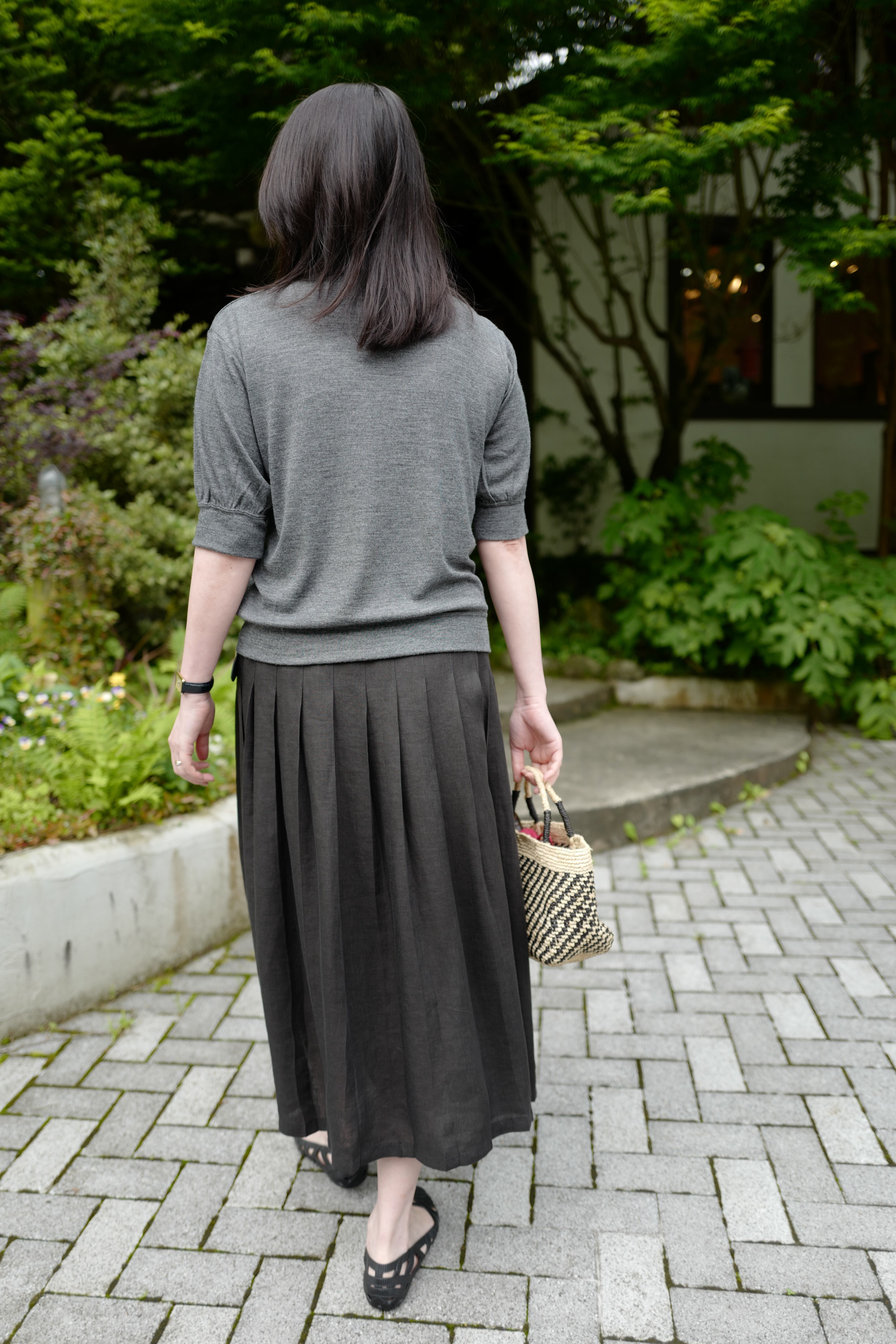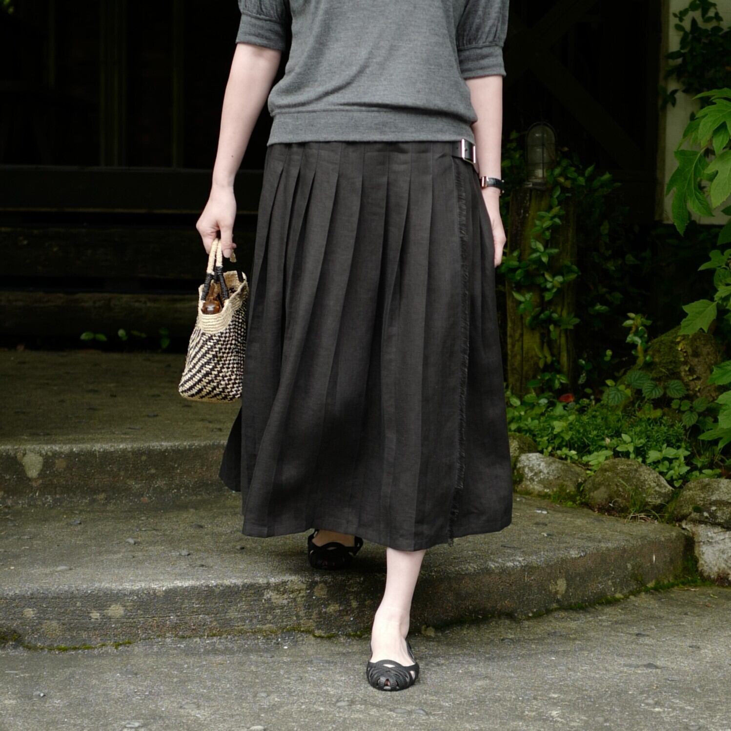 程よく裾のプリーツを落とすことで、よりナチュラルな雰囲気に仕上げています。