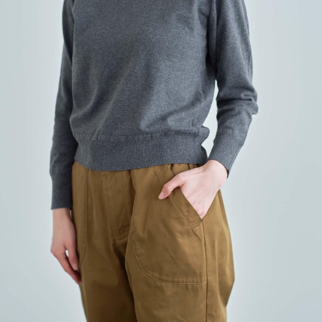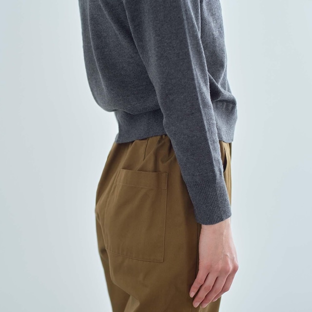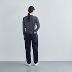 ウエストは両サイドにのみゴムを入れ、トップスをインしてもきれいめに履いていただけるデザインに。
