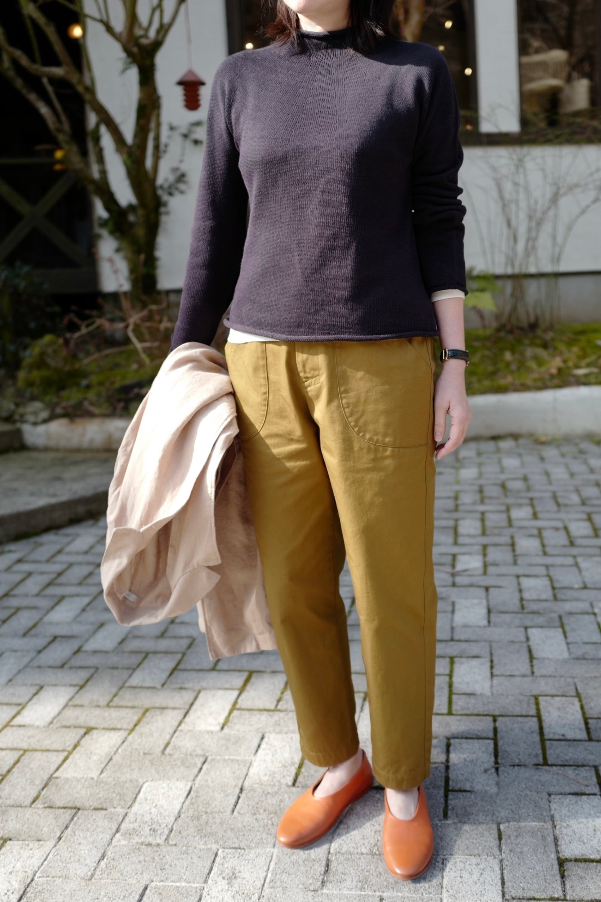 世の中にある小柄な方向けのパンツは、腰回りまでぴったりしたシルエットになっていることが多いので、このパンツは、腰回りはゆったり、でも膝下はスッキリとしたバランスを重要視して作ったそうです。